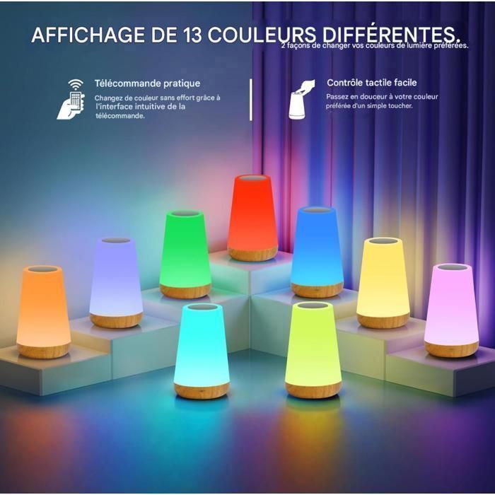【Système tactile sensible】: Cette lampe de chevet tactile utilise un système tactile sensible. Appuyez brièvement sur le bouton pour changer l'heure d'extinction de la lampe. Il est très approprié pour une utilisation dans les chambres à coucher, les chambres de bébé, les salles de soins infirmiers, le camping en plein air, etc. [Plusieurs modes et couleurs]: La lampe de chevet dispose de 3 modes, dont la respiration, le saut et le dégradé Le voyant du bouton a clignoté une fois et la lampe s'éteint après 1 heure. -: Appuyez longuement pour assombrir, appuyez brièvement pour changer de couleur. Notre forfait comprend un câble de chargement USB. Clignote deux fois et s'éteint après 2 heures, clignote trois fois et s'éteint après 4 heures, clignote quatre fois et s'éteint après 6 heures. VTIGER LED Veilleuse Enfant Bébé,3 Luinosité,Rechargeable,Fonction Il est très approprié pour une utilisation dans les chambres à coucher, les chambres de bébé, les salles de soins infirmiers, le camping en plein air, etc. 【Batterie rechargeable】: La Veilleuse LED a une batterie rechargeable intégrée de 1500 mAh. Caractéristiques: Puissance: 3W (max) Batterie: 1800 mah / 3,7 V Tension d'entrée: 5V / 1A Taille de l'article: 8,5 * 8,5 * 13,5 cm Taille de l'emballage: 9,5 * 9,5 * 13,8 cm Poids: 264g Paquet: 1., Touchez la lampe de chevet 2., Câble USB 3., Manuel Lampe De Chevet Conforama Veilleuse Enfant Pour Chambre Salon, LED Lampe De Chevet Tactile Dimmable Avec Mode Chaud Et 256 RVB Couleurs Changement, USB Rechargeable Lampe Veilleuse Adulte Avec Minuteur Lampe Chevet Leroy Merlin ASANMU Lampe de Chevet Colorée à 360°, Veilleuse LED Rechargeable Lampe... Toutes les opérations sont effectuées sur l'écran tactile, ce qui est très intelligent et pratique. +: Appuyez longuement pour allumer, appuyez brièvement pour changer de couleur.