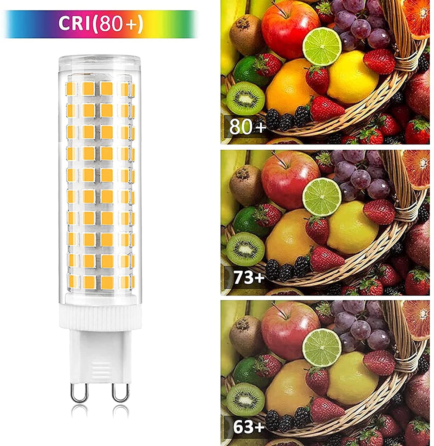 Veuillez vérifier les dimensions et confirmer si cette ampoule G9 est adaptée. Luminosité instantanée, pas besoin d'attendre le temps de chauffe. Convient pour une tension de 100-240V, avec une luminosité, 12w led g9 qui correspond à un halogène de 120 watts. [Efficace en énergie] Cette ampoule led G9 est très sûre et dispose d'une protection contre les surcharges,Classe énergétique A, les courts circuits et la surchauffe ★ Rendu des couleurs élevé : La lampe G9 LED a un angle de faisceau de 360°, le rendu des couleurs élevé (CRI > 80) fournit des couleurs plus vives et naturelles, soulage la fatigue visuelle, protège vos yeux. Luminosité instantanée, pas besoin d'attendre le temps de préchauffage. ★ Haute performance : ampoule LED G9 12W, excellente résistance à la chaleur. Caractéristiques du produitÉconomie d'énergieRemplacez l'ampoule halogène G9 par l'ampoule G9 LED, 90% de l'énergie et de la facture d'électricité pourraient être économisés. ★ Installation facile : Base standard G9 bi-pin, qui s'adapte bien à divers luminaires à douille G9., Veuillez noter que cette ampoule G9 est un peu plus grande qu'une ampoule halogène traditionnelle. Spécifications :Type de base : G9Puissance : 12WTaille de la lampe : 76MM*18., 5MMFlux lumineux : 1200LMRemplacement : Ampoule halogène 100WTempérature de couleur : Blanc lumière du jour 6000K, Blanc chaud 3000KVoltage : AC 220-240VAngle du faisceau : 360Durée de vie : 20,000 heuresCRI:80RaPointes chaudes :- Cette lumière G9 led est un peu plus grande qu'une ampoule halogène traditionnelle. Lot de 6 Ampoules Led E27 12W (Équivalent Ampoules Halogène 100W... Veuillez vérifier soigneusement les dimensions avant d'acheter. Led G9 Blanc Froid G9 LED Ampoule Dimmable, 12W (équivalent Halogène 100W) 1200LM 124 Perles De Lampe à LED PCS AC 220V Pour L'éclairage Domestique, Faisceau à 360 Degrés, Base G9 Bi Pin,Cold White,10 Pack Ampoule Led G9 Dimmable Facile à installerStandard G9 Bi-pin base, peut être facilement adapté G9 socket. Lumière claire et douceCréer un environnement confortable pour votre maison. Voltage : AC220-240V, dimmable. Sans aucun scintillement et sans aucun bruit. HHZY Ampoules LED G9 12 W 1200 Lumens, Pas de Scintillement, AC220-240V, Remplacement 120 W Ampoule Halogène, Angle de Faisceau 360°, Non Variable, Lot de 3,Cool White 6000k