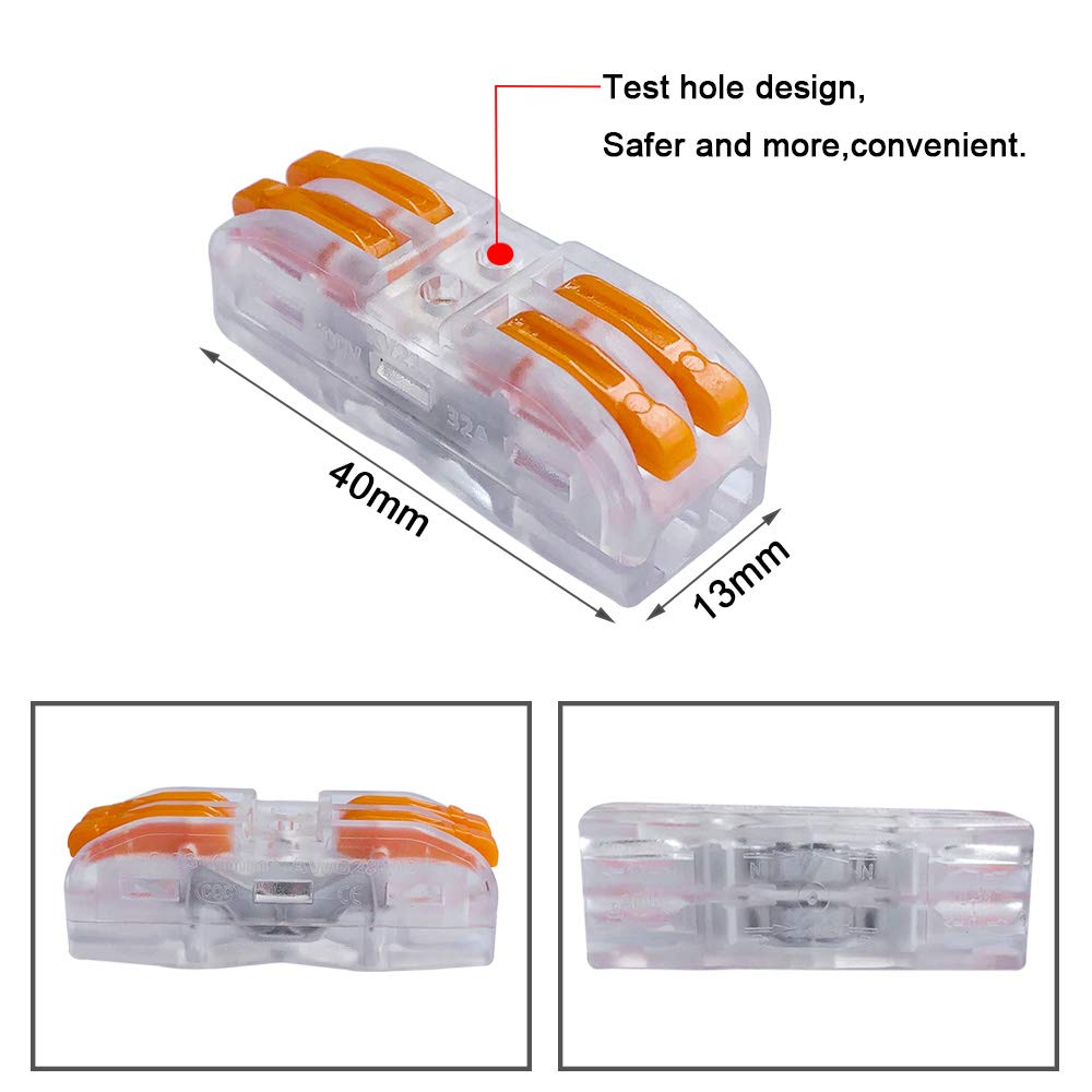 〓 Bonne Performance en Matière de Sécurité: Fabriqué dans le meilleur matériau isolant ignifuge Nylon PA66., Avec les avantages d'une longue durée de vie, de la résistance à la corrosion, de la résistance au vieillissement, de la résistance à la haute pression, de l'isolation et du retardateur de flamme, il peut efficacement empêcher les fuites électriques. ●Connecteur de fil réutilisable. Avantage: ●Convient pour une variété de tailles de fils. QitinDasen 15Pcs Preiu Levier-Ecrou Fil Connecteur Set, Bilatéral 4... ●Le levier de commande évite le besoin d'outils. Spécifications: ●Matériau: Cuivre Étamé + Nylon Modifié PA66 ●Taille: 40 X 13., 5 X 14., 5mm (L*W*H) ●Poids: 6., 8g ●Couleur: Orange + Transparent ●Forfait Comprend: Levier-Ecrou Fil Connecteur X 15Pcs Plastique Rangement Boîte X 1Pcs Tension nominale 400V / 4KV, courant nominal 32A, puissance nominale 7KW. ●Résistance à la corrosion, résistance aux températures élevées et au vieillissement. Il suffit de brancher et de jouer, puis terminé. Bornes de raccordement à levier universelles pour 2 conducteurs ●Nous pouvons vous donner 100% de remboursement si vous n'êtes pas satisfait de nos produits. ●Connexion rapide plug and play. 100% Satisfaction Garantie: ●Si les marchandises sont défectueuses ou ont d'autres problèmes, n'hésitez pas à nous contacter par email. 〓 Matériau Interne Haute Qualité: Le shrapnel interne est un matériau en cuivre, un revêtement de surface spécial empêchant l'oxydation, une faible résistivité et de meilleures propriétés conductrices. Wago 2 Entrées QitinDasen 15Pcs Preiu Levier-Ecrou Fil Connecteur Set, Bilatéral 4 Boite De Derivation Il est idéal pour les applications compactes et complexes. 〓 Pratique: Ils sont parfaits pour les connexions amovibles car il n’est pas nécessaire de souder. Point de test intégré, test électrique sans besoin de retirer le ruban. Si vous avez besoin de changer d'autres fils, relevez simplement le petit levier et extrayez ce dont vous avez besoin et remplacez-le, ce qui est très pratique. Convient aux fils de cuivre doux toronnés de taille 0., 08~4 mm² / 28~12 AWG., Comment Utiliser? 1., Ouvrez le boîtier du fil à 9-10mm., 2., Poussez le levier orange à 90°., 3., Branchez les fils., 4., Appuyez sur le levier pour fermer la pince. 〓 Largement Application: Il est largement appliqué au câblage de bâtiment, tel que celui utilisé pour contrôler plusieurs lumières par un commutateur. ●Point de test intégré., ●Connexion sans entretien. Convient aux fils de cuivre dur toronnés de taille 1., 5~2., 5mm² / 16~14 AWG. Connectez n'importe quelle combinaison de fils de cuivre solides, toronnés et flexibles plus rapidement et de manière plus fiable.