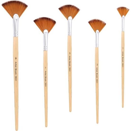 Taille : 5 pièces de tailles différentes., Couleur : bois., Quantité : 5 pinceaux éventail. Caractéristiques : notre pinceau éventail d'artiste avec des poils doux et flexibles et un manche en bois de haute qualité, assure un toucher et une prise en main très confortables pour une excellente performance 4 : C'est un bon cadeau pour vos enfants, amis, débutants, artistes ou toute personne qui a du plaisir à peindre., Contenu : 5 pinceaux éventail. Pinceaux d'artiste - HURRISE - 12pcs - Nylon résistant - Manche en bois... Lot De 4 Pinceaux De Maquillage Pour Joues En Laine À Tête Plate, Doux... Lot De Pinceaux Aquarelle De Raphaël, Pinceaux Aquarelle Nettoyage facile avec de l'eau chaude, les brosses conservent leur forme et gardent leur ressort après le nettoyage. 5 Pinceaux Éventail pour Peinture à L' et Acrylique en Nylon pour Aqua4932 6034150530852 Fonction : idéal pour l'aquarelle, la peinture acrylique, le corps, les ongles, le visage, offrant la combinaison parfaite entre équilibre et confort Matériau : pinceaux de peinture aquarelle fabriqués en nylon de haute qualité, poils doux et résistants, forte absorption d'eau Large utilisation : parfait pour tout niveau d'artiste, des débutants aux professionnels, convient pour une utilisation avec de l'aquarelle, des huiles, des températures, de l'acrylique et plus encore
