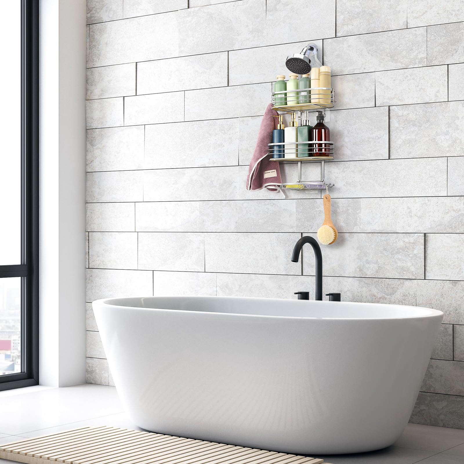 👍【Design de grande capacité】Le panier de douche à 3 étages à suspendre sur le pommeau de douche offre de l'espace pour stocker une grande variété de produits de plusieurs formes et tailles. Insérez la partie supérieure dans les parties inférieures du panier de douche et appuyez sur la vis dans les trous, accrochez deux paniers, enfin, fixez la ventouse à la boîte à savon et fixez-la au mur. Nous vous donnerons une solution satisfaisante dans les 24 heures Douche à pommeau, avec filtre de douche à 15 niveaux - Bricolage 👍【Installation facile】Facile à installer et aucun perçage nécessaire pour protéger le mur. Etagere De Douche Sans Perçage IDesign Panier De Rangement à Suspendre, Petit Valet De Douche En Métal Avec 2 Paniers Et 3 Crochets Doubles, Panier De Bain Pour Cabine De Douche, Argenté Etagere Douche Leroy Merlin Excellent design et qualité 👍【Robuste et durable】Le panier de douche au-dessus du pommeau de douche est fabriqué en fer et en peinture grise de haute qualité. 👍【Design amovible】Paniers amovibles qui peuvent être retirés et accrochés à tout moment. Pince sur le pommeau de douche : vous allez vivre une expérience...