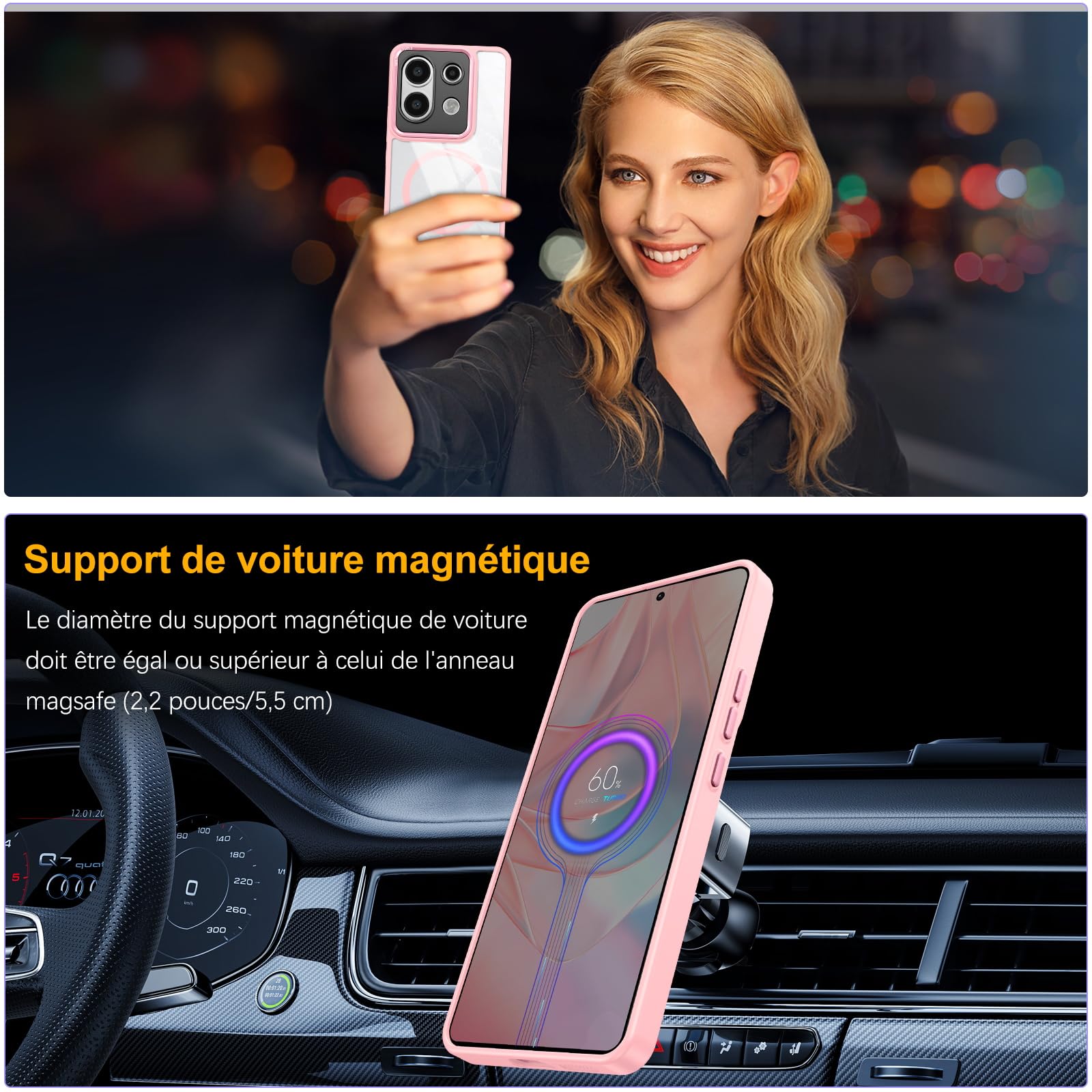 C'est le meilleur cadeau pour vos amis, mère, père, fille, fils, camarades de classe les jours d'anniversaire, fête des mères, fête des pères, jour de Noël et ainsi de suite. À savoir : Q: Puis-je utiliser un protecteur d'écran avec cette coque ? R: Oui, la coque BENTOBEN est très compatible avec les protecteurs d'écran. Cette coque Xiaomi Redmi Note 13 Pro 5G peut tre fermement attach e à tous les accessoires MagSafe, tels que chargeur MagSafe, portefeuille, batterie portable et support de voiture. Q: L'étui offre une protection contre les chutes ? R glable: oui, la coque est conçue pour absorber les chocs et prot ger votre Xiaomi Redmi Note 13 Pro 5G contre les chutes et les rayures. Coque Xiaomi Redmi Note 10 Pro,Qualité Militaire Rotatif Anneau Support Une élévation discrète autour de l'appareil photo maximise la protection de l'objectif contre l'usure et les rayures. Étui Portefeuille avec Fermeture Magnétique pour Xiaomi Redmi Note 13 Pro L Coque Xiaomi Redmi Note 13 Pro 5G (Non compatible avec d'autres mod les de t l phone) Design mis à jour et élégant. Les cache-touches tactiles offrent une excellente expérience de réponse et s'alignent parfaitement avec les commandes du volume, les ports et l'appareil photo. [Tendance et durable] Notre coque à paillettes Mag-Safe pour Xiaomi Redmi Note 13 Pro est une combinaison parfaite de résistance et de design moderne et élégant, rend votre Xiaomi Redmi Note 13 Pro brillant, luxueux, étincelant et mince Coque magnétique Mag-Safe pour Xiaomi Redmi Note 13 Pro chic et offre une protection idéale contre la saleté, les rayures, la poussière, les chocs et le risque de glisser des mains. Protection Complète] Avec un matériau de coussin en TPU et airbags élastiques de cadre PC dur en dos, votre téléphone peut être protégé des chocs et des rayures dans toutes les directions.Les cadres surélevés de l'appareil photo et de l'écran sont bien isolés des chocs et des bris sur un sol plat Les taches et la poussière Mag-Safe sur la coque peuvent être facilement enlevées avec un chiffon humide. La coque pour Xiaomi Redmi Note 13 5G est équipée d'un anneau magnétique intégré qui s'aligne parfaitement avec les chargeurs MagSafe et autres chargeurs certifiés Qi, offrant une expérience de fixation forte et une charge sans fil plus rapide. La coque de protection est facile à installer et à retirer... [Coque magnétique Xiaomi Redmi Note 13 Pro 5G 6,67''] Coque pour téléphone portable Xiaomi Redmi Note 13 Pro 5G Silicone magnétique ultra mince anti-rayures pour coque magnétique Xiaomi Redmi Note 13 Pro, la coque de protection pour Xiaomi Redmi Note 13 Pro est fabriquée en silicone TPU de haute qualité, la coque pour téléphone portable Xiaomi Redmi Note 13 Pro est fabriquée en matériau magnétique haute résistance et maintien de la forme et est très doux et confortable à tenir dans la main. [Gardez votre téléphone en sécurité] Protection d'écran et de l'appareil photo, Bord surélevé pour protéger la coque du téléphone Xiaomi Redmi Note 13 Pro, appareil photo rose clair et flash magnétiques Mag-Safe Le pare-chocs avant robuste protège l'écran des rayures. Design humanisé Vous êtes frustré par la poussière qui s'accumule sur les étuis transparents ? Cet étui compact ne ramasse pas facilement la poussière, vous offrant une sensation agréable et une prise en main propre. Coque Anti Choc Xiaomi BENTOBEN Coque Magnétique Pour Xiaomi Redmi Note 13 Coque Redmi Note 13 Pro 5g Xiaomi Redmi Note 13 Pro 5G coque offre une surface lisse au toucher et ne s'emmêle pas dans les tissus de vêtements ou de sacs, gardant votre téléphone toujours beau.