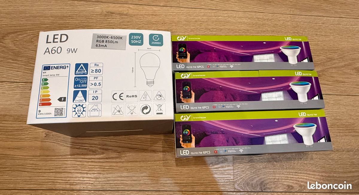 Tapo Ampoule BENEXMART Tuya WiFi LED Ampoule Gu10 RGBCW Gradateur Lampe Spot Lumière Télécommande Smart Life App Contrôle Vocal Via Alexa Google Home Assistant (6 Paquets Ampoule Led Connectée Intègre un dispositif Wi-Fi dans sa puce interne qui permet d'avoir un contrôle total de l'ampoule aussi bien à l'intérieur qu'à l'extérieur du lieu sans avoir besoin d'aucun autre appareil car l'ampoule se connecte de manière autonome au réseau Wi-Fi. Garantie 2 ans · Service après-vente · Attention au client pour résoudre vos questions Ampoule GU10 intelligente RGB WiFi Tuya - NOUS-P8 Ampoule Connectée Wifi Gu10,Rgbw Led Smart Ampoule, Compatible Avec... Vous pouvez allumer et éteindre l'ampoule, choisir la couleur ou la température de couleur que vous souhaitez, régler l'intensité, programmer son allumage et son arrêt à certaines plages ou heures du jour, etc. Compatible avec Amazon Alexa et Google Home, vous pouvez avoir un contrôle vocal d'elle, ainsi que l'appairer et la programmer avec d'autres produits intelligents grâce à sa compatibilité avec IFTTT en ayant ainsi un contrôle total de l'ampoule intelligente et de sa consommation à tout moment et n'importe où Contrôle total de l'ampoule aussi bien à l'intérieur qu'à l'extérieur du lieu sans avoir besoin d'un autre appareil car l'ampoule se connecte de façon autonome au réseau Wi-Fi Ampoule RGBW capable d'adopter la température de couleur blanche désirée, ainsi que n'importe quelle couleur de lumière dans les 16 millions de teintes que vous pouvez avoir, vous pouvez également régler son intensité de 10 % à 100 % Conçu avec des LED SMD haute puissance et efficacité lumineuse. En outre, il est compatible avec Amazon Alexa et Google Home, vous pouvez avoir un contrôle vocal de celle-ci, ainsi que l'associer et la programmer avec d'autres produits intelligents grâce à sa compatibilité IFTTT.