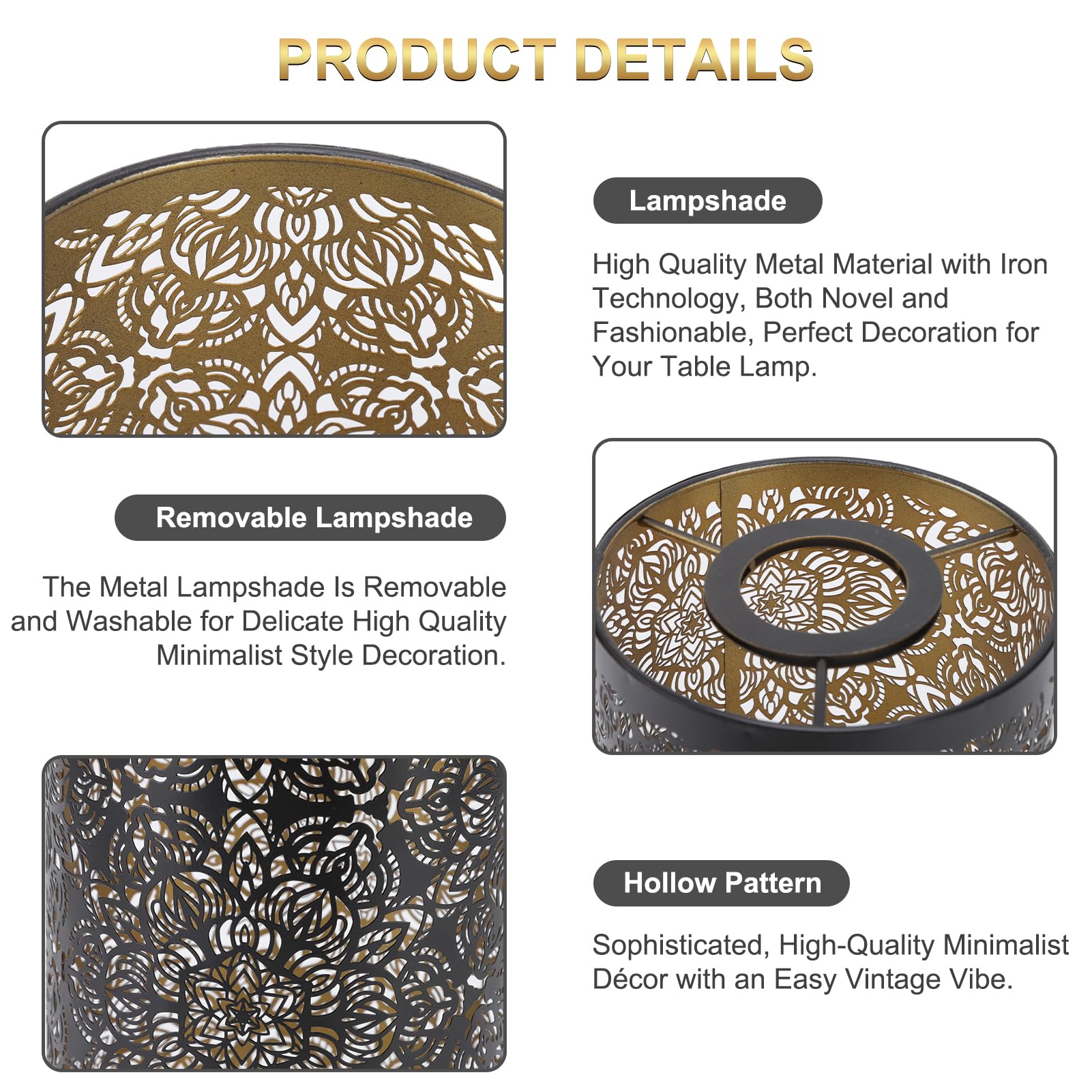 Spécification: Type d'article : abat-jourMatériau : Fer forgéTaille du produit : hauteur : env. Design creux : utilisant la technologie de sculpture, il a un design de feu d'artifice creux. Lorsque la lampe à poser traverse cet abat-jour... Nous vous proposons un choix varié d 【Motifs gravés au laser】 L'abat-jour est créé à l'aide d'un processus de gravure au laser, lui permettant de projeter des motifs complexes et détaillés sur le mur lorsque la lampe de table est allumée, ajoutant une touche d'élégance artistique à la pièce. 【Conception antique】 L'abat-jour en fer est fabriqué avec un matériau métallique de haute qualité utilisant la technologie de l'art du fer, lui donnant un aspect et une sensation antiques. 12 cm/4,7 pouces, largeur : env. 386 g/13,6 ozTaille d'ampoule appropriée : E27, E26Installation : Interventionnelle Liste des paquets : 1 x abat-jour Note: Toutes les données sont mesurées manuellement et il existe certaines erreurs dans les résultats de mesure. Une fois installée, l'ampoule peut être utilisée normalement, ce qui en fait une solution d'éclairage pratique et élégante pour n'importe quelle pièce. 12 cm/4,7 poucesPoids brut : env. 【Éclairage unique】 Lorsque l'abat-jour est allumé la nuit, il illumine tout le mur de la pièce, créant des ombres magnifiques et complexes qui ajoutent une ambiance unique à la pièce. Abat Jour Plafond Abat-jour En Métal, Abat-jour Creux En Forme De Fleur, Couvercle De Lumière Noire Pour Lampe De Table Et Lampadaire, Avec Diamètre Supérieur De 13 Cm Et Diamètre Inférieur De 19 Cm Lampe A Poser Salon Abat-jour en métal creux Abat-jour en métal ajouré E27 E14, utilisation... Eosnow Abat-jour de forme ovale en métal creux sculpté, compatible avec