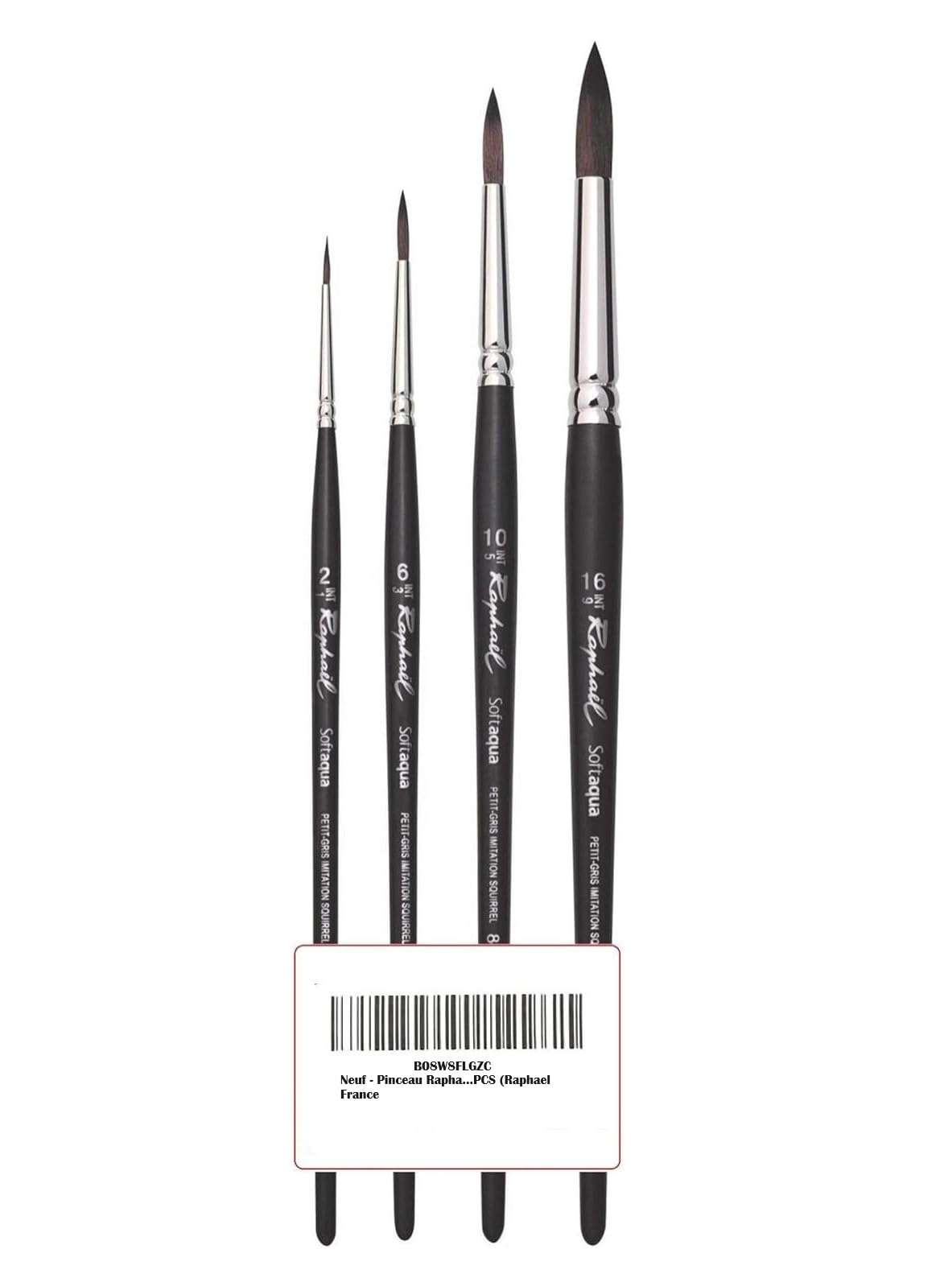 Pinceau Raphael SOFTAQUA., SÉRIE 845 Vegans., N°2 ., 4., 10., 14., Set 4PCS La forme ondulée de cette fibre crée des espaces qui retiennent les molécules d’eau et la couleur, contrairement aux fibres synthétiques classiques, droites et alignées, qui les laissent glisser. former une superbe pointe ce qui le rend très apprécié pour la réalisation des détails. Pinceau Aquarelle Raphael Set De Pinceaux Aquarelle Raphael SOFTAQUA 845 Vegan - 4 Pinceau Aquarelle De Voyage Couleur : Blanc | Marque : Pébéo | Commandez en ligne en toute simplicité | Expédition sous 48h | Paiement Sécurisé | Artmania, votre boutique experte en fournitures beaux-arts | Venez découvrir la sélection : Peinture pour céramique Le pinceau Raphaël rond Softaqua, série 845 est idéal pour les lignes, détails, retouches, contours et finitions Ce produit a été développé pour les dessins Espace Beaux Art Couleur : Blanc | Marque : Pébéo | Commandez en ligne en toute simplicité | Expédition sous 48h | Paiement Sécurisé | , votre boutique experte en fournitures beaux-arts | Venez découvrir la sélection : Peinture pour céramique Pinceaux choisis par Thierry Duval Le résultat de cette recherche est une fibre synthétique exceptionnelle offrant une capacité de rétention inégalée. Raphael 805 Softaqua Sentetik Sincap Kılı Fırça No:2 Sulu Boya Fırçası