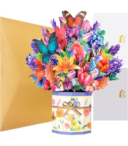 Touche personnalisée - La carte peut être personnalisée avec le nom du destinataire, ce qui en fait un cadeau unique et spécial pour toute occasion. La couverture avant affiche un fond rouge riche avec une élégante grappe de roses, y compris des roses rouges vives mélangées avec des notes de jaune et de bleu. Design 3D élégant : dispose d'une grappe vibrante de roses rouges, complétée par des notes de roses jaunes et bleues, toutes gracieusement disposées pour créer un affichage saisissant. Design 3D époustouflant - Cette carte de bouquet de fleurs pop-up personnalisée présente un design papier 3D complexe qui apparaît pour révéler un magnifique bouquet de fleurs. Cadeau parfait - Cette carte est parfaite pour toutes les occasions telles que les anniversaires, les cartes de remerciement, la fête des mères ou tout simplement pour montrer à quelqu'un de spécial à quel point vous tenez à vous. Enveloppe Rouge Et Carte De Voeux Vierge Image stock - Image du azur... Cette carte pop-up 3D vibrante dispose d'un bouquet de tulipes magnifiquement conçu, conçu pour ajouter une touche d'élégance et de couleur à toute occasion. Cette carte pop-up 3D magnifiquement conçue présente une... Carte Pop Up Fleurs 3d Carte Anniversaire Femme Carte Pop-Up 3D ILovepaper - Bouquet De Fleurs Pour Anniversaire, Fête Des Mères - 13x18 Cm Avec Enveloppe Carte Mariage Carte Voeux Fleurs 3d Carte pop-up en forme de pyramide - Les petits papiers d'Ilse Les belles fleurs sont rehaussées par des feuilles vertes luxuriantes, ajoutant une touche de nature à l'arrangement. Taille et emballage - La carte mesure environ 4 x 6 pouces lorsqu'elle est fermée et peut être facilement placée dans une enveloppe pour l'envoi. Les feuilles vertes apportent une touche délicate de contraste, améliorant la beauté de l'arrangement.