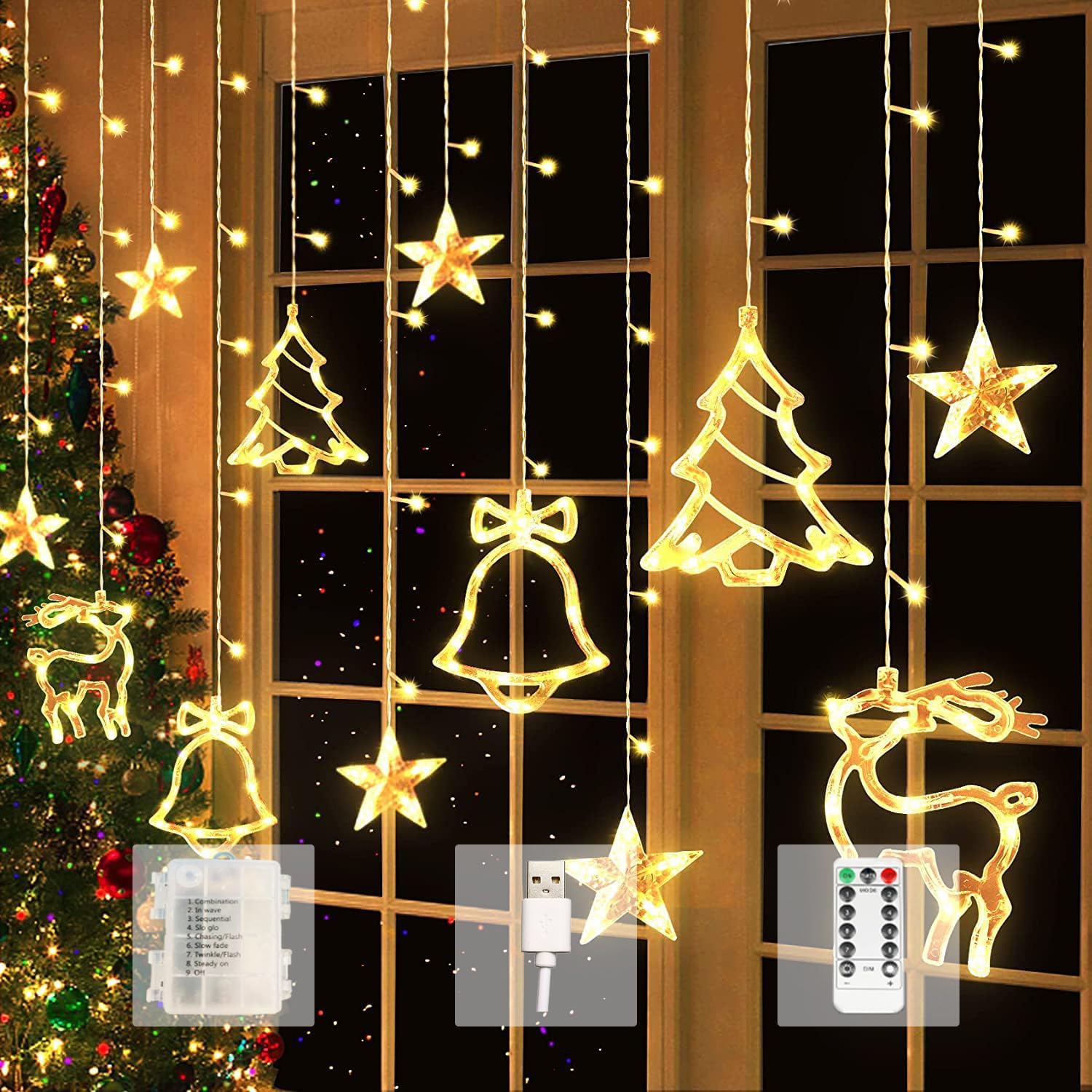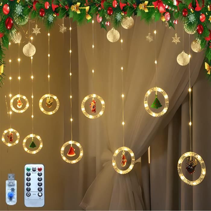 Rideau lumineux pour fenêtre avec minuterie, guirlande lumineuse d'intérieur en forme d'étoile pour Noël Lumiere Noel Rideaux Lumineux Étoilés – 5 Étoiles Scintillantes, 36 LEDs, Fo Guirlande Lumineuse Fenetre Indice d'étanchéité IP65, pas besoin d'avoir peur de la pluie et de la neige. Le rideau lumineux intérieur crée une atmosphère enchanteresse pour Noël, les fêtes et les pièces. Avec une faible puissance de 31 V 6 W, économise de l'énergie et est sûr au toucher. Guirlande lumineuse romantique étoiles : la guirlande lumineuse étoiles mesure 2 mètres de long, 0,6 à 1 mètre de haut et 3 mètres, 6 grandes et 6 petites 12 étoiles avec 138 LED. Sécurité et étanchéité : les rideaux à étoiles ont une puce intelligente intégrée, la LED ne surchauffe pas même en cas d'utilisation prolongée. Quntis Guirlande luineuse de fenêtre de Noël, 76 LED, 9 étoiles Les magnifiques rideaux de guirlande lumineuse sont une décoration confortable. Largement utilisé pour les fenêtres, les murs, les portes, les arbres, les avant-toits, le balcon, la cour, la chambre, la terrasse, les mariages, etc. Rideau Lumineux Noel Solaire Avec Étoile, 2.5M*90Cm 12 Étoile 138 Led... La longueur totale est de 2,2M, le fil de lumière est de 1,2M et le fil d'extension est de 1M. Beau et Fonctionnel - GlobaLink Rideau Lumineux Noël - le complément parfait à vos décorations festives ! La longueur totale est de 2,2M, le fil de lumière est de 1,2M et le fil d'extension est de 1M. Il y a 5 brins de différentes longueurs de guirlandes lumineuses avec des étoiles(30CM d'espacement)et un total de 96 perles LED.