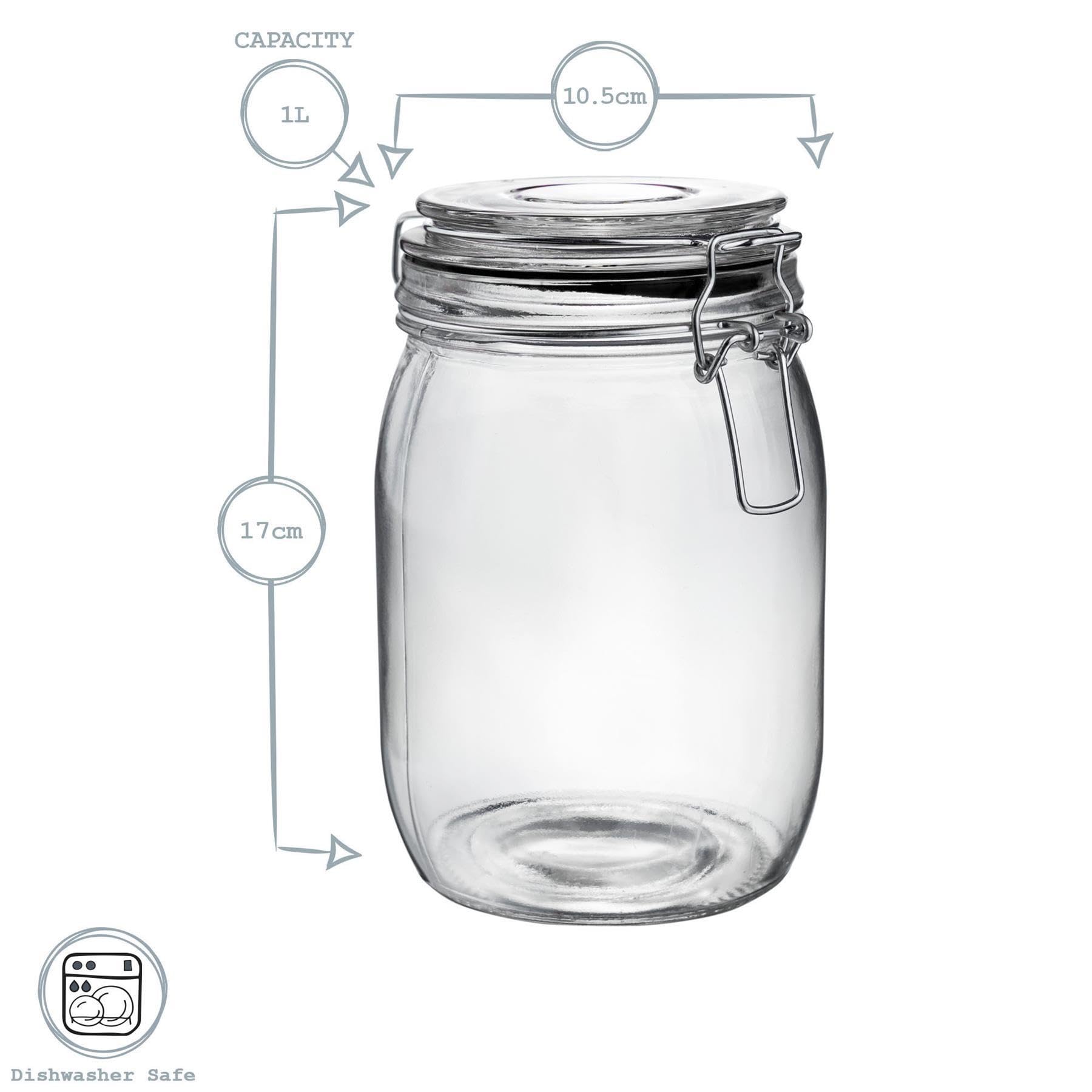 Dimensions : H 17 x Ø 10,5 cm Argon Tableware Lot de 6 bocaux de rangement en verre transparent de 3x 750ml Bocaux de Conservation en Verre - Noir Joint en Silicone... Solution de stockage polyvalente – Avec une capacité généreuse de 1 000 ml, ce pot est parfait pour conserver les aliments secs, les céréales, les sauces, les confitures et les conserves. Fraîcheur hermétique pour une durée de conservation plus longue – Équipé d'un couvercle supérieur à clip en fil torsadé en acier inoxydable et de quatre anneaux en silicone vibrants, ce pot assure une fermeture hermétique robuste, gardant vos aliments frais plus longtemps. Ils font partie de la magnifique gamme Argon Tableware Idéal pour garder les essentiels de votre cuisine comme les fruits, les légumes, les cornichons et les chutneys faits maison frais et savoureux. Construction durable et fiable – Fabriqué à partir de verre durable, ce pot de stockage est conçu pour une utilisation domestique et professionnelle en cuisine. Charme rustique avec fonctionnalité moderne – Le pot de rangement en verre Argon Tableware de 1 litre apporte un mélange parfait d'élégance de ferme vintage et de fonctionnalité de stockage moderne. Les anneaux en silicone surpassent les joints en caoutchouc traditionnels, offrant une durabilité et une longévité inégalées. Description du produit Ce bocal de rangement en verre de 2 litres avec couvercle à clip par Argon Tableware apporte une touche chaleureuse de style rustique et vintage à tout intérieur tout en aidant à garder vos pâtes, céréales et biscuits frais. Disponible dans des tailles allant de 70 ml à 3000 ml (3 litres), chaque récipient de la collection de bocaux en verre Argon Tableware a... Pot A Biscuit Bocal En Verre Hermétique De Couleur Ambre Avec Couvercle à Clip Pour Le Stockage Des Aliments - Chine Pot à Nourriture En Verre Et Pot De Rangement En Verre Prix Bocal A Biscuit En Verre Complétez votre collection – La collection de bocaux de rangement en verre Argon Tableware propose des tailles allant de 70 ml à 3 000 ml, vous donnant la flexibilité d'organiser tous vos essentiels de cuisine.