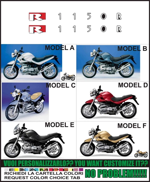 Stickers Kit for R 1150 R. Fourche r1100rs sur r1150r The base of high quality products ORACAL 751C High Performance Cast (duration: 8 years). 2pcs R1150R Motorrad R 1150 R ADESIVI PEGATINA Stickers R1150 ✅ Duration: 8 years (ORACAL 751C High Performance Cast); Kraftstoffverteiler / druckregler für BMW Motorrad R 1150 R Rockster ab... BMW R 1150 R Rockster. Technische daten des motorrades. Motorrad It is a film with thickness of 60 microns. Includes: Set of 2 stickers (left and right) + installation instructions (easy Installation).