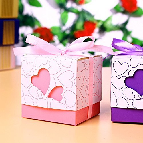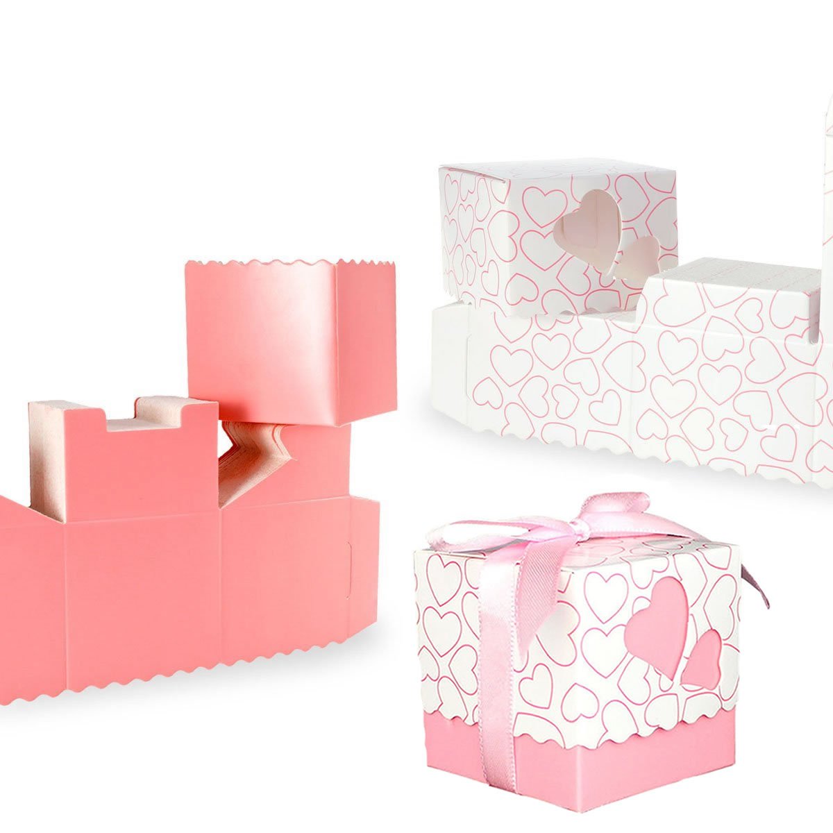 Cadeau,Lot De 50 Boîtes à Dragées En Papier En Forme De Papillon Rose