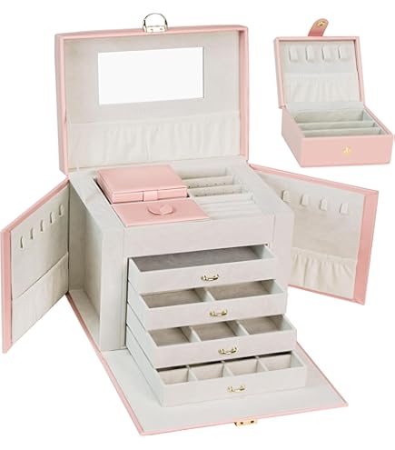 La 4ème couche dispose de 4 longues grilles pour organiser le collier et la chaîne. Dès lors, vous avez une commode lumineuse qui économise de l'espace et rend votre chambre plus propre et plus élégante. Organiseur de bijoux KAMIER avec miroir sur le dessus, et il dispose de 2 armoires latérales cachées, chaque côté dispose de 8 crochets solides, pour vous assurer qu'ils ne se mélangent pas et sont robustes pour contenir des bijoux lourds En outre, nos boîtes à bijoux de voyage sont conçues pour classer vos bijoux en un coup d'œil, réduisant ainsi le temps de recherche. Il y a également un couvercle en verre sur le dessus de la première couche, de sorte que nous pouvons choisir les bijoux en un coup d'œil. Le tiroir inférieur est vraiment un grand tiroir pour vos gros objets, même pour vos cosmétiques. Boîte à bijoux à 6 étages pour femme. Coffret cadeau idéal : cette boîte à bijoux en cuir synthétique est élégante et attentionnée. Le bon placard est un espace de rangement pour bracelets et boucles d'oreilles, vous pouvez accrocher vos boucles d'oreilles créoles 4,8 4,8 sur 5 étoiles (33). Grande boîte à bijoux pour femme, organiseur à bijoux à 6 couches avec couvercles en verre, 5 tiroirs et 2 portes en verre pour... Ce support à bijoux peut être utilisé non seulement comme boîte à bijoux pour fille, boîte de rangement pour bagues, colliers, boucles d'oreilles, mais aussi comme boîte cadeau pour bracelets. Organisateur Tiroir ASINGYER Grande Boîte à Bijoux Pour Femme, Organiseur à Bijoux à 6 Couches Avec Couvercles En Verre, 5 Tiroirs Et 2 Portes En Verre Pour Rangement De Coffre De Rangement Le placard gauche de la boîte à bijoux est un espace de rangement pour colliers. Tout d'abord, elle dispose de 6 couches, chaque couche peut stocker différents bijoux, distinguer clairement vos bijoux, et elle est très claire et pratique à porter. Avec 6 tiroirs, vous pouvez l'emporter comme bijou à la maison. Organisateur de bijoux multifonction : la première couche de la boîte à bijoux répond à tous vos besoins de rangement de bague. Boîte de Rangement pour Tiroir à Bijoux avec Serrure Boîte à