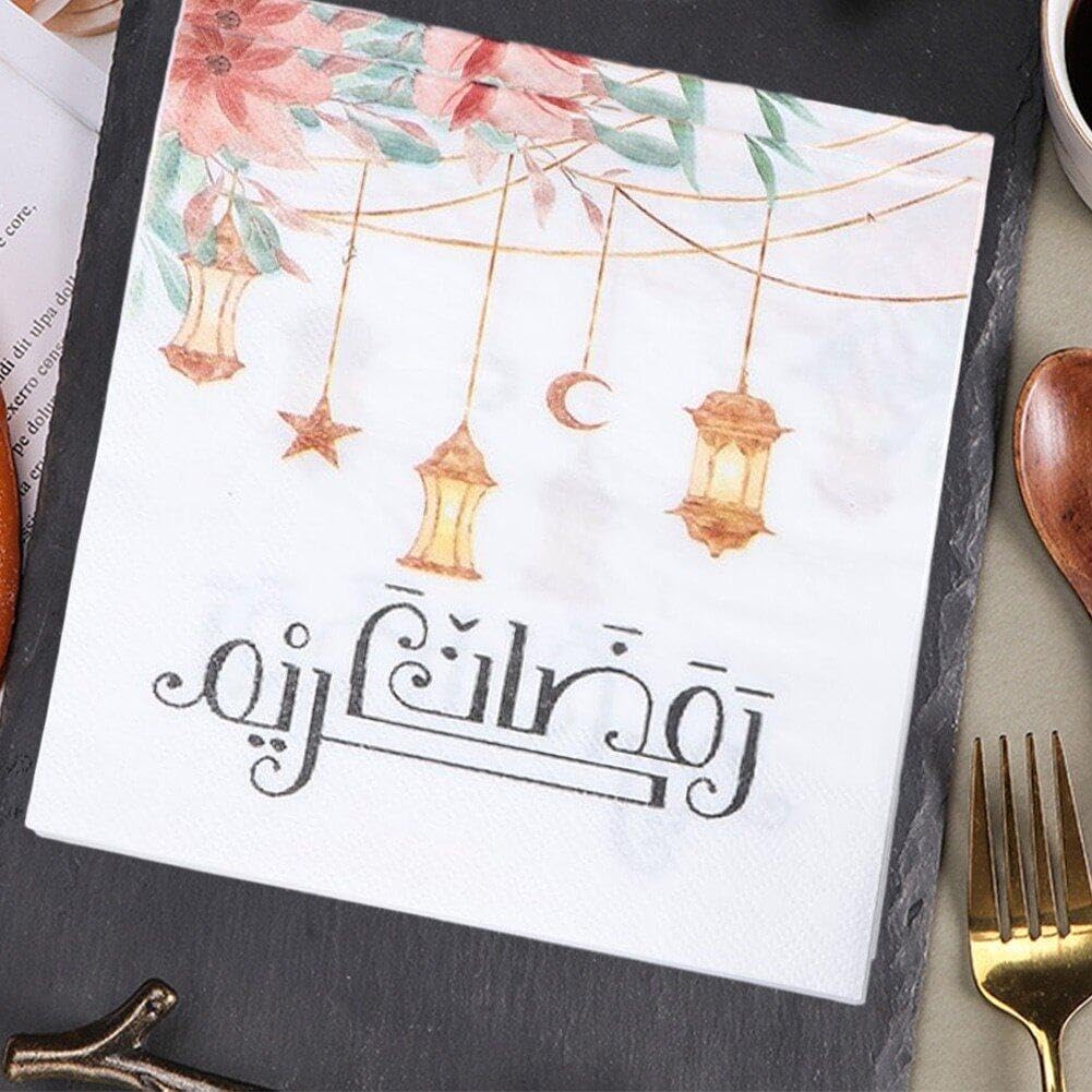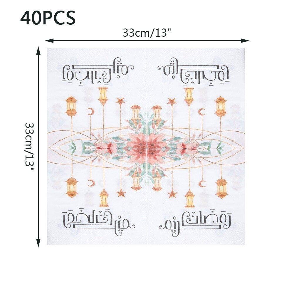 Optez pour une superbe décoration de table pour fêter la fin du ramadan lors de l'Aïd el-Fitr ou de l'Aïd el-Adha avec ce lot de 20 serviettes en papier Eid... Serviettes en papier pour l'Aïd Ramadan et l'Aïd - Décorations dorées et blanches - 33 x 33 cm - Décorations de table pour le Ramadan - Fournitures de fête Fournitures de fête du Ramadan : fabriquées à partir de papier de qualité supérieure, ces serviettes offrent à la fois une douceur luxueuse et une absorption exceptionnelle pour tous vos invités. 10 pièces/set anneaux serviette décorations - Mauritius Eid Mubarak Decoration De Table Lot De 40 Serviettes En Papier Jetables Pour Le Ramadan, Serviettes En Papier Musulmanes Islamiques, Fournitures De Fête Pour Décorations De Table Serviette Ramadan Ces serviettes sont également un cadeau attentionné et élégant pour les amis et la famille pendant les vacances spéciales. Rend votre fête spéciale pendant le Ramadan. 40 ou 80 serviettes par lot offrent suffisamment de fournitures pour tous vos besoins du Ramadan. Serviettes en papier parfaites pour l'Aïd : que vous organisiez une grande réunion Iftar, un petit dîner de famille ou une célébration de l'Aïd, ces serviettes jetables sont le complément parfait à vos fournitures du Ramadan. Ils sont conçus pour résister aux déversements et aux dégâts, offrant une solution pratique et élégante pour vos fêtes du Ramadan. Une affiche pour le ramadan et l'aïd avec une mosquée et des minarets... Ces serviettes décoratives Ramadan Kareem sont parfaites pour créer une ambiance sophistiquée et festive sur votre table, améliorant l'atmosphère spirituelle du mois saint.