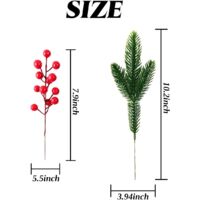 RONYOUNG Lot de 32 feuilles de pin artificielles et baies rouges artificielles pour Noël Caractéristiques : Matériaux : mousse et fil, plastique. 20 Pcs Artificielles Branches De Baies Rouges 15 Cm Pics De Noël Spray Contenu et taille : paquet de 10 tiges de houx artificielles, hauteur 15 cm. Décoration parfaite : ces branches de baies de Noël rouge vif ressemblent à de... Matériau : ces tiges de baies rouges artificielles sont fabriquées en mousse et en fil, et les branches de pin artificielles sont fabriquées en plastique et en mousse, durables et réutilisables, les tiges peuvent être pliées et ajustées à volonté pour décorer d'autres articles. 16 pics à baies rouges artificielles. Dimensions : Baie rouge de Noël : 20,1 x 14 cm. Contenu du paquet : 16 branches de pin artificielles. Ils ont tous un fil, qui peut être facilement utilisé pour faire diverses décorations. Branches de feuilles de pin artificielles : 25,9 x 10 cm. Remarques : Les mesures étant prises à la main, les tailles indiquées peuvent varier légèrement. Couronne De Noël à L'aquarelle Faite De Branches D'épinette Fleurs... 20 Branches De Pin Artificielles, Baies De Houx De Noël, Branches Nombreuses utilisations : ces jolies baies sont parfaites pour égayer une couronne de Noël et une guirlande peuvent également être utilisées pour l'artisanat floral, les cadeaux de Noël, les pédicels d'intérieur, la décoration de mariage et de fête, la fabrication de cartes de Noël, la décoration d'arbre de Noël, les travaux manuels de Noël.
