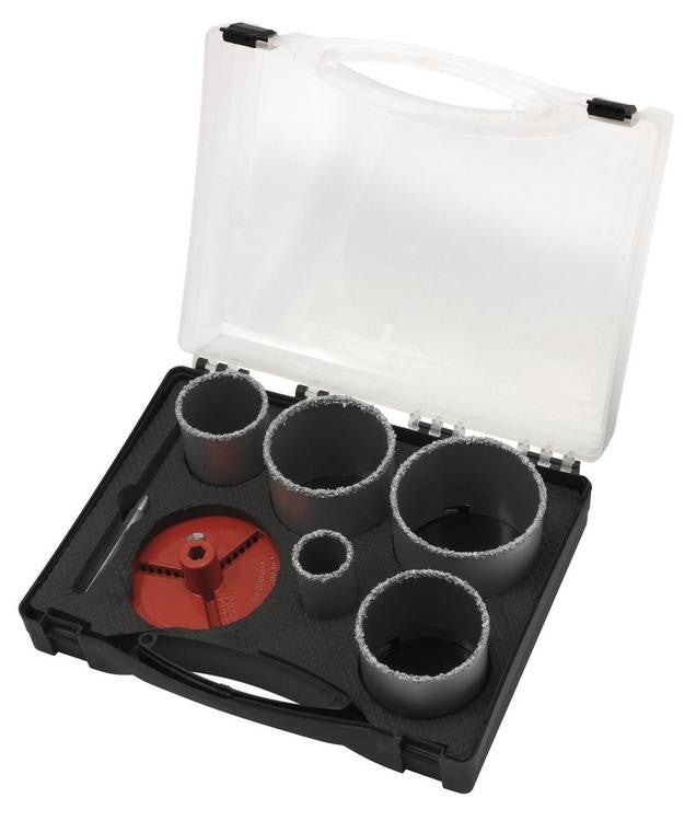 Coffret de 5 scies cloches diamantées pour percer carrelage, céramique, brique, béton. Scie cloche en acier carbone A3 avec revêtement Scie cloche 83 au meilleur prix | Leroy Merlin Forets béton en carbure de tungstène • Système universel de fixation SDS. Il permet un montage et un démontage instantanés des forets qui s'encliquettent dans des cannelures Pour percer le carrelage, la céramique, la brique, le béton. Scie Cloche Carrelage Ribitech - Scies Cloches Carbone - Mallette De 8 : 19/22/29/32/38/44 Scie Cloche Bois Utiliser uniquement en fonction de perçage (pas en mode percussion) à faible vitesse. Coffret de 5 scies cloches diamantées Lors de l'utilisation, veuillez le refroidir régulièrement avec de l'eau. Marque : Ribitech. Poids : 1.24kg. Description. Kit 5 Scies Cloches Diamantées RIBIMEX PRSCDX5-M - Lot Scies Cloches - Contenu du kit: Valisette comprenant 5...