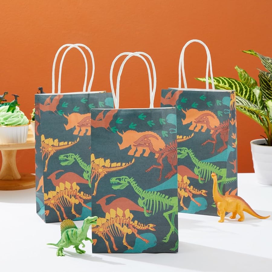 Offrez une expérience préhistorique amusante avec ces sacs surprise dinosaures ! BELLE VOUS 24 Pack Paper Dinosaur Birthday Party Bags with Handle Faciles à remplir et à offrir, ces sacs cadeau sont un choix idéal pour les fêtes à thème dinosaure. Prehistoric Dinosaur Party Supplies Unique-Prehistoric Dinosaur Party Loot Bags | 8 Pcs Lot De 8 Sacs Surprise Préhistoriques Dinosaures, 78312, Multicolore, 1 Count (Pack Of 8 Prehistoric Dinosaur Party Decorations Thème dinosaure: Imprimez des dinosaures mignons sur chaque sac Contenu de la commande: 8 sacs surprise dinosaures; Thème dinosaure: Imprimez des dinosaures mignons sur chaque sac; Occasion parfaite Occasion parfaite: Idéal pour les anniversaires et les mariages Contenu de la commande: 8 sacs surprise dinosaures Ce lot de 8 sacs cadeaux imprimés d'animaux en papier brillant est parfait pour les anniversaires et les mariages.