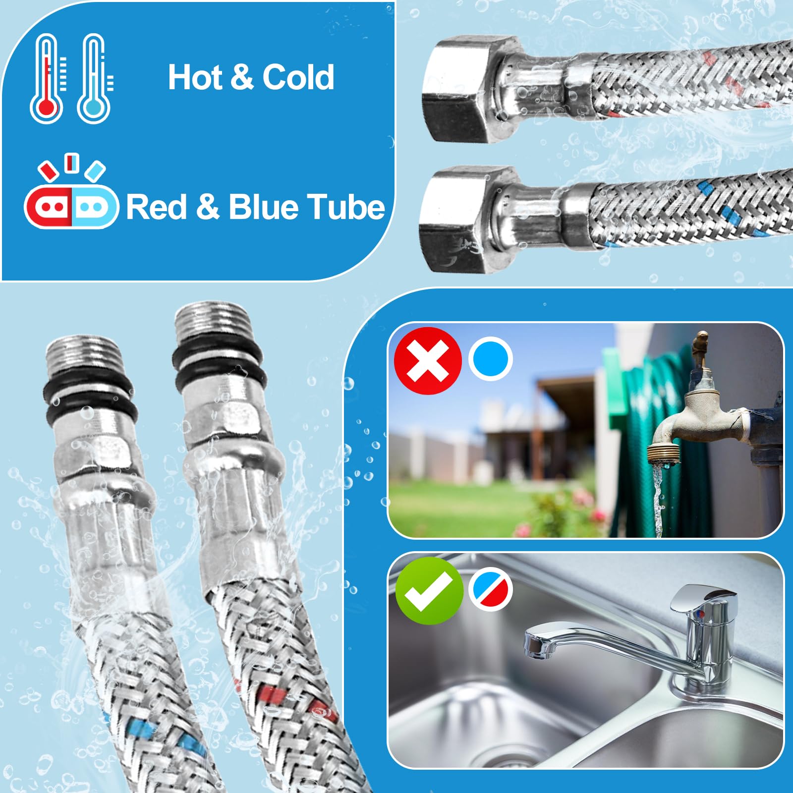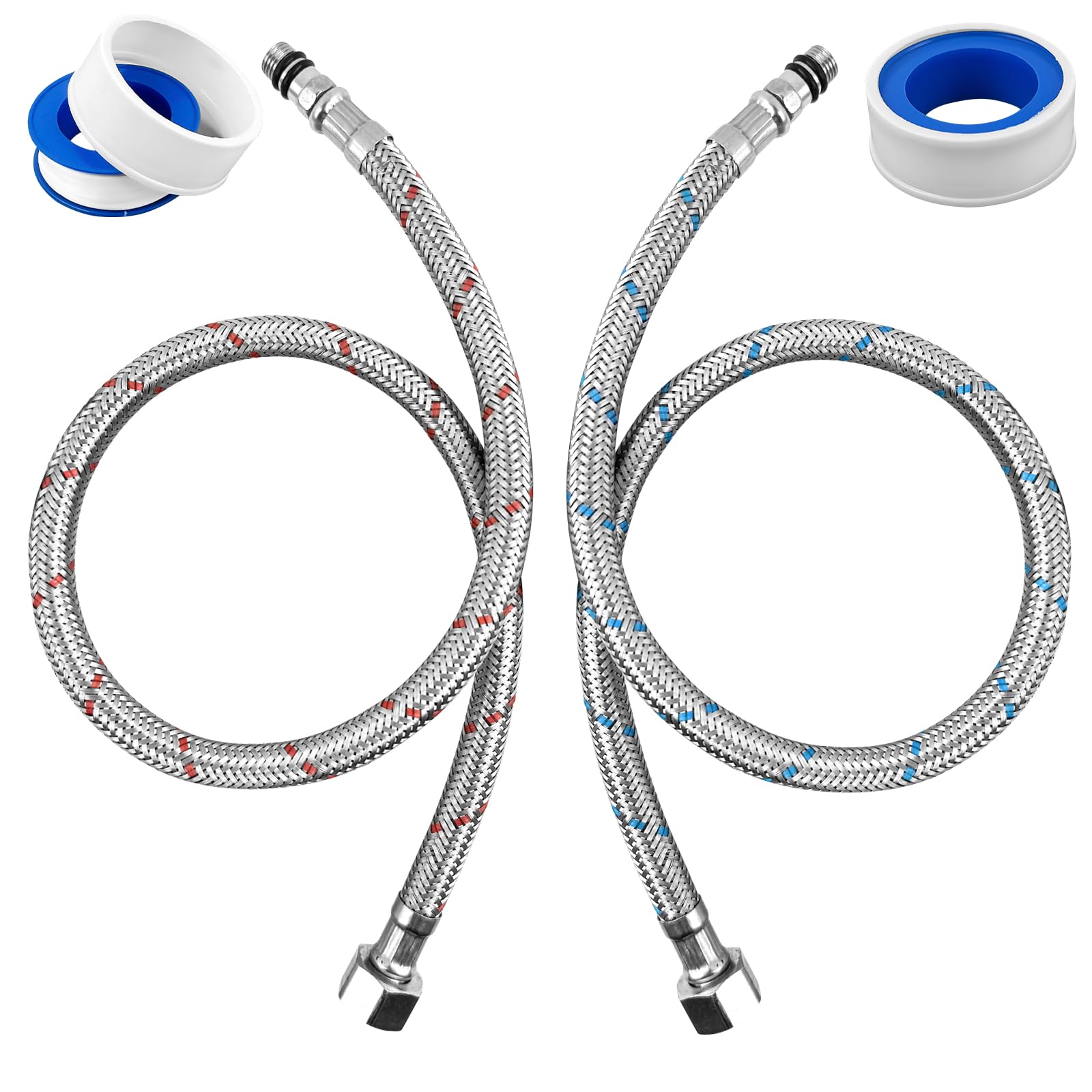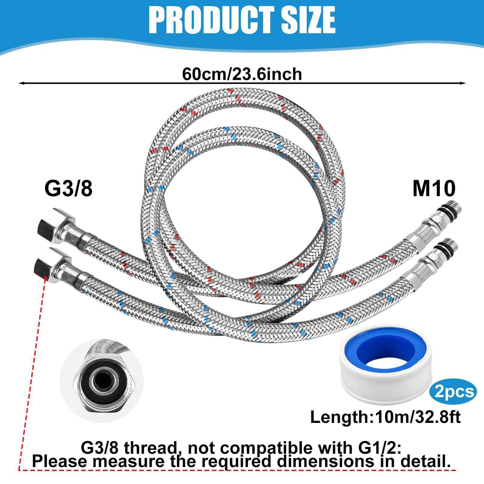 Facile à installer : le tuyau flexible de robinet est un excellent remplacement pour les tuyaux de robinet défectueux, compatible avec les robinets de cuisine et de salle de bain. Longueur de la bande de plomberie : 10 m. Remarque : le raccord de tuyau de raccordement ne peut pas être utilisé comme tuyau d'extension. En raison des différents réglages des écrans, il peut y avoir une légère différence de couleur. Le tuyau rouge est pour l'eau chaude et le tuyau bleu est pour l'eau froide, le tuyau flexible G3/8 x M10 convient aux débutants. Matériau : acier inoxydable. Caractéristiques : le raccord de tuyau de raccordement en 2 parties mesure 80 cm de long et a une plage de température de 0 °C à 90 °C, raccords filetés... Nos avantages : Fabriqué en acier inoxydable de haute qualité, le tuyau flexible G3/8 x M10 est robuste et ne se casse pas facilement. Couleur : rouge pour l'eau chaude, bleu pour l'eau froide. Chaque raccord de tuyau de raccordement mesure 60 cm de long et dispose d'un écrou de raccord G3/8 x M10 pour connecter le robinet et la vanne d'angle. Lot de 2 tuyaux de raccordement - G3/8 x M10 - 60 cm La technique de tressage soignée offre une résistance exceptionnelle à la pression, est résistante aux pliures, le tuyau blindé de robinet peut réduire le risque d'éclatement. Tuyau Flexible Robinet Lot 2 Tuyaux Raccordement Acier Inoxydable G3/8 X M10 - 80cm Flexible - Pour Robinet Cuisine/salle Bain Tuyaux Haute Pression 80cm Contenu de la livraison : 1 paire de tuyaux flexibles G3/8 x M10 et 2 rubans de plomberie dans le paquet. Matériau de qualité supérieure : fabriqué en maille d'acier inoxydable robuste, le tuyau de raccordement tressé en acier inoxydable est conçu pour durer et résister à l'usure. Caractéristiques : Nom : tuyau blindé pour robinet. MatéRiau De Haute Qualité: Le tuyaux pour robinet est tressé avec du fil d'acier 304 de haute qualité, qui est solide et durable, a un bon effet de flexion et est doux, résistant à l'usure, à la pression, aux hautes et basses températures, et a une longue durée de vie. Facile à Installer: Aucun plombier requis, installation sans problème, facile à installer en quelques minutes à l... Veuillez confirmer la taille du robinet à connecter avant de passer commande.