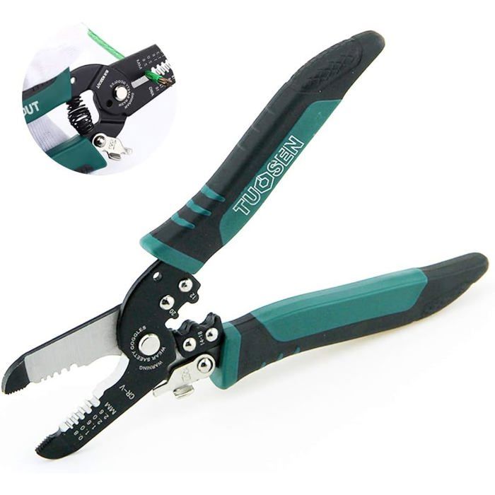 Caractéristiques : Longueur totale : 210 mm. Pince à dénuder et torsade multifonction avec fonction de mesure de l'électricité pour couper et tirer efficacement les fils, tirer, gratter et presser. Outil parfait pour les électriciens et les amateurs de bricolage Pince à dénuder 8 en 1 avec fonction de test de tension, offrant commodité et précision pour les travaux électriques. Dites adieu à plusieurs outils avec cette... 【Mesure de courant intégrée】: combinant le dénudage de fil et les tests électriques dans un seul outil, les compteurs de courant intégrés permettent des mesures en temps réel tout en dénudant les fils, ce qui permet d'économiser du temps et d'améliorer la précision lors des travaux électriques. Pince à Dénuder Multifonctionnelle 8 En 1 Avec Mesure De L 【Fendage de fil tranchant】 : avec des capacités de fractionnement de fil pointues, ces pinces peuvent manipuler des fils de différentes épaisseurs sans endommager le noyau. Pince à dénuder multifonctionnelle 8 en 1 : l'outil indispensable pour tous vos travaux de câblage ! ⚡🔧 🌟 Un seul outil, des possibilités infinies ! Coupez, dénudez, sertissez, découpez et bien plus encore grâce à cet outil puissant au format de poche, conçu pour les électriciens, les bricoleurs et les amateurs qui exigent la précision ! Commander le votre ici : https... Pince À Dénuder Seese 8 En 1 Avec Testeur De Tension, Outil 【Conception d'enroulement à quatre trous élargie】: la pince est livrée avec un design d'enroulement à quatre trous élargi, facilitant l'alimentation et l'enroulement des fils pour des connexions serrées et sécurisées. 【Pince à dénuder de précision】 : ces pinces disposent de mâchoires de dénudage réglables pour un dénudage précis et propre, s'adaptant à différentes tailles de fils pour garantir la polyvalence pour une large gamme de tâches électriques.