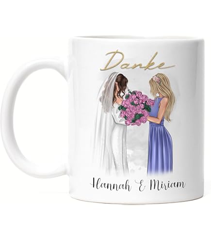 Le cadeau parfait pour toute demoiselle d'honneur Peut être utilisé comme tasse à café, tasse à cacao et tasse à café. Idée cadeau pour la demoiselle d'honneur pour se souvenir du moment spécial avec cette tasse. Avec ce beau souvenir, la journée peut être démarrée directement Imprimé des deux côtés et donc idéal pour les droitiers et les gauchers. Une idée cadeau sympa pour la femme d'honneur. Qualité supérieure : passe au lave-vaisselle et au micro-ondes., Capacité : environ 330 ml. Merci ! ✅ Fabriqué à la main : finition allemande, imprimée, emballé et envoyé. ✅ MERCI D'ÊTRE MON TRAUZEUGINE. LOOXIS Personalisierte Tasse mit Namen, Text & Motiv bedruckt – 325ml, Keramik, versch. Farben – Geschenkidee Männer, Frauen, Jahrestag, Valentinstag... L'impression robuste garantit un plaisir durable. Trauzeugin Tasse DANKE! Dass Du Meine Trauzeugin Warst Spruch Toutes nos tasses sont imprimées à 100 % en Allemagne, dans des conditions équitables et avec amour. Tasse en céramique blanche avec inscription en cadeau. Surface 100 % céramique de qualité supérieure. Impression garantie qui passe au lave-vaisselle - Impression par sublimation de qualité supérieure et donc particulièrement robuste. Trauzeugin fragen: Geschenkbox LENI GOLD WEDDING Möchtest du meine Trauzeugin werden Trauzeugin