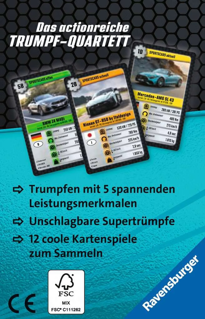 Jeu de cartes Quatuor et Trump en un pour 2 fans de technologie et plus à partir de 7 ans Règle du jeu en allemand SUPERTRUMPF Motor Sport Quartett 2001 gebraucht 13 offres à partir de CHF 6.60 (état : 04.03.2023) Disponibles immédiatement Évaluations et informations détaillées pour les produits Prix et informations concernant Supertrumpf 20683 - Sports-Cars (Ravensburger) sur le plus grand comparateur suisse Celui qui met la meilleure performance en un tour reçoit les cartes des autres joueurs. Qui Est Ce Football Jeu De Cartes Supertrumpf High Speed Ravensburger - Quartet Et Jeu De Bataille - Voitures Et Technologie - À Partir De 7 Ans Jeu De Carte Foot 32 cartes (8 quartets) sont représentées des photos cool de modèles intéressants et cinq caractéristiques de performance. Aucune autre caractéristique ne peut battre un super trump Celui qui les joue intelligemment gagne toutes les cartes à la fin Ravensburger Juego de Cartas para niños 20683, Juego de Cartas de...