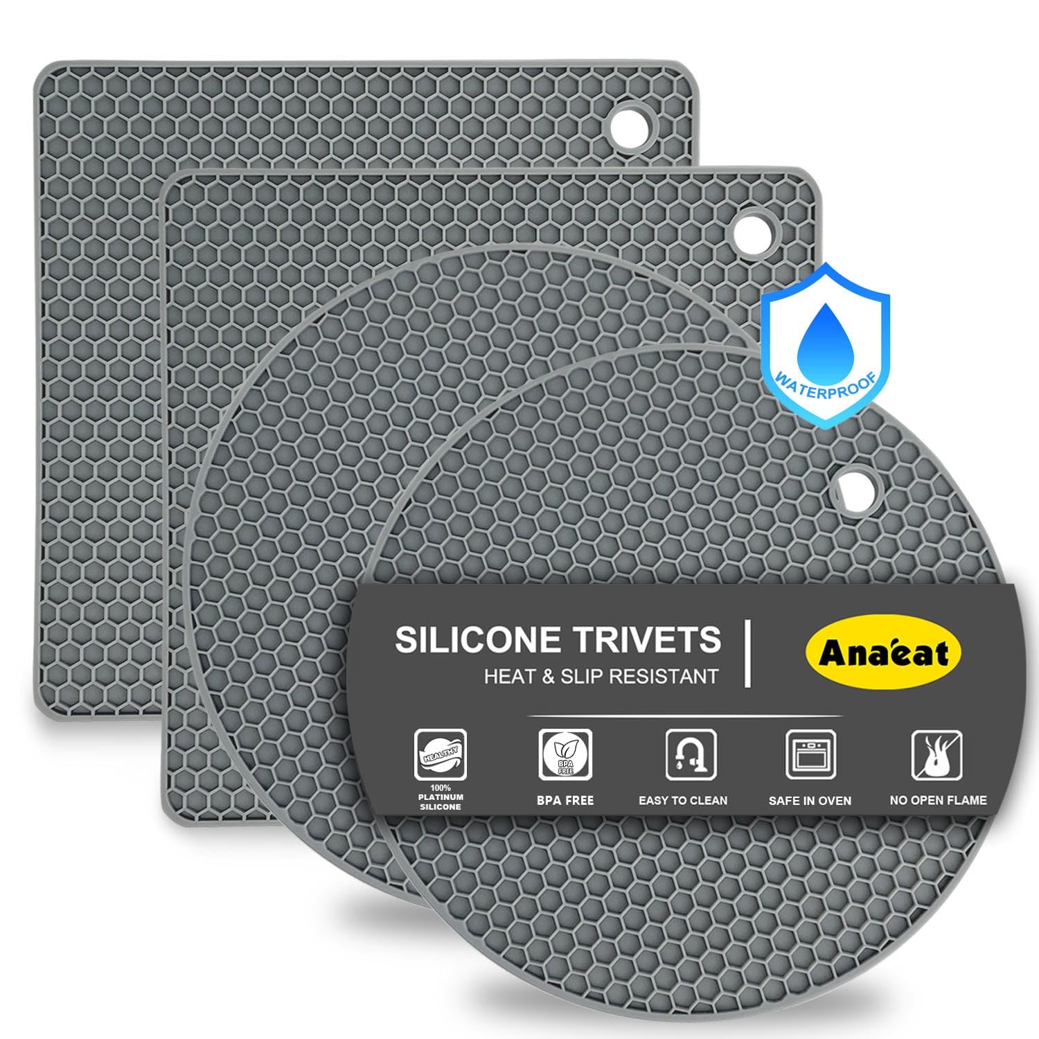 Faits saillants · Matériau. Silicone · Couleur. Riz nordique · Marque. Daisiki · Dimensions du produit. 17,8L x 17,8La x 0,6Ep centimètres · Forme. Carré et rond Maniques pour cuisine légères et pratiques Dessous de plat en silicone antidérapant pour éviter que rien ne glisse. Lot de 4 dessous de plat pliables en silicone, protection longue durée Lot De 4 Dessous De Plat En Silicone Noir – Tapis De Cuisine Antidérapants – Maniques Multi-usages, Tapis De Vaisselle Et Assistants Pour Ouvre-bocaux – Fabriqués En Silicone De Qualité Alimentaire Un essentiel de cuisine indispensable dont vous aurez besoin. Un tampon peut vous aider à résoudre de nombreuses tâches., 5., Protégez votre table : nos sets de table sont conçus pour protéger votre table ou votre plan de travail contre les dommages causés par les plats chauds, casseroles ou poêles. 4、Dessous de plat multi-usages : notre trépied en silicone est antidérapant et flexible, ce qui en fait un accessoire de cuisine indispensable dans la cuisine. Vous pouvez les empiler, les enrouler ou les accrocher pour le ranger, facilement et économiser de l'espace. Presque tout peut facilement laver la surface antiadhésive et sécher rapidement. Maniques Cuisine, Gant Four Résistants À La Chaleur Jusqu'À 250℃, Gant Cuisine Four en Silicone... 1、Silicone de haute qualité et sécurité alimentaire : maniques en silicone pour casseroles chaudes fabriquées en silicone de qualité alimentaire, sans BPA, flexibles et durables, matériau en silicone de qualité supérieure qui garantit qu'elles ne rouillent pas.