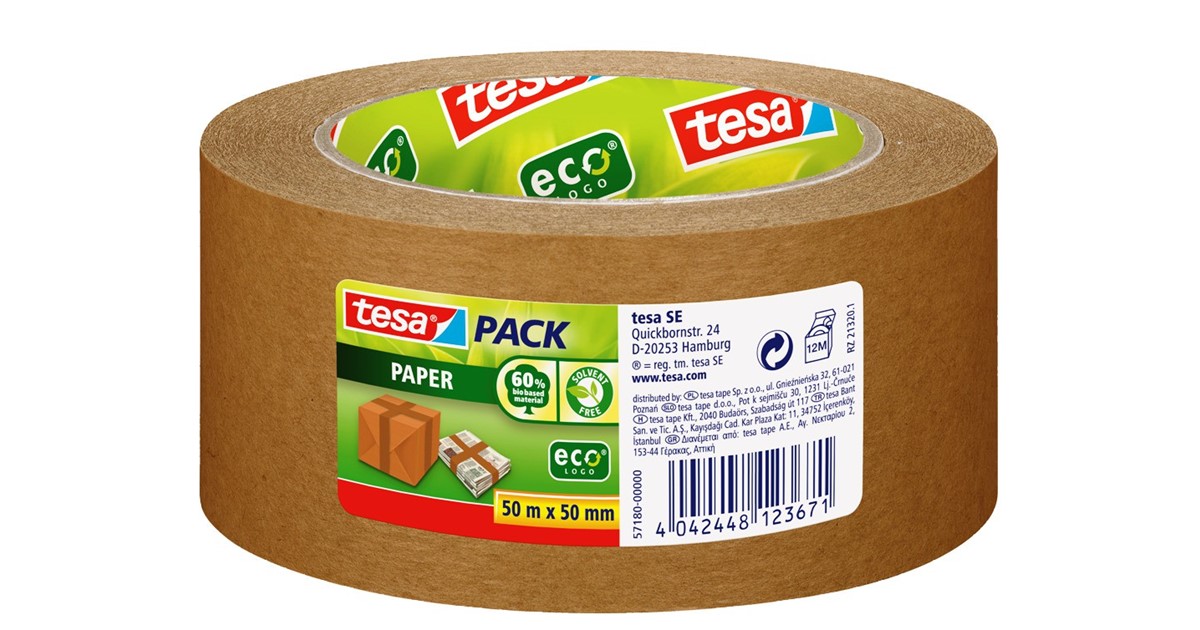tesapack Paper EcoLogo : produit de manière écologique, ce ruban adhésif pour colis en papier de tesa est l'alternative durable et fiable aux rubans adhésifs en plastique Tesa 4313 ecoLogo Papier braun Packband - Böttcher AG Adhésif et indéchirable - 6 rouleaux; Déchirable à la main; Cœur du rouleau en carton 100 % recyclé; Matériau 60 % biologique; Sans solvant. Voir plus... Rouleau Adhesif Pour Meuble Rouleaux Emballage Lot De 6 Rouleaux Ruban Adhésif D'emballage Marron 50mm X 66m - Adhésif Puissant Pour Colis Et Cartons Scellage Carton Professionnel Scotch Avec Devidoir Efficace et facile à utiliser : en combinaison avec un dévidoir de ruban tesapack, le ruban d'emballage peut être traité rapidement et est facile à déchirer à la main Ruban d'emballage Tesa Pack papier standard ecoLogo 58291, 50 mm x 50 m, brun. Réf: 14.137.735. Durable et recyclable; Papier provenant de forêts certifiées... Facile à traiter : le ruban d'emballage en papier offre les mêmes performances adhésives et la même résistance à la déchirure que les rubans adhésifs pour colis de haute qualité de tesa. Ruban d'emballage écologique : fabriqué avec un matériau biosourcé et 60 % sans solvant, le noyau du rouleau est en carton 100 % recyclé Il est idéal pour sceller les enveloppes, les boîtes et les colis rembourrés Cet adhésif kraft TESA est constitué d'un ruban adhésif support papier lisse, avec masse adhésive en caoutchouc naturel.