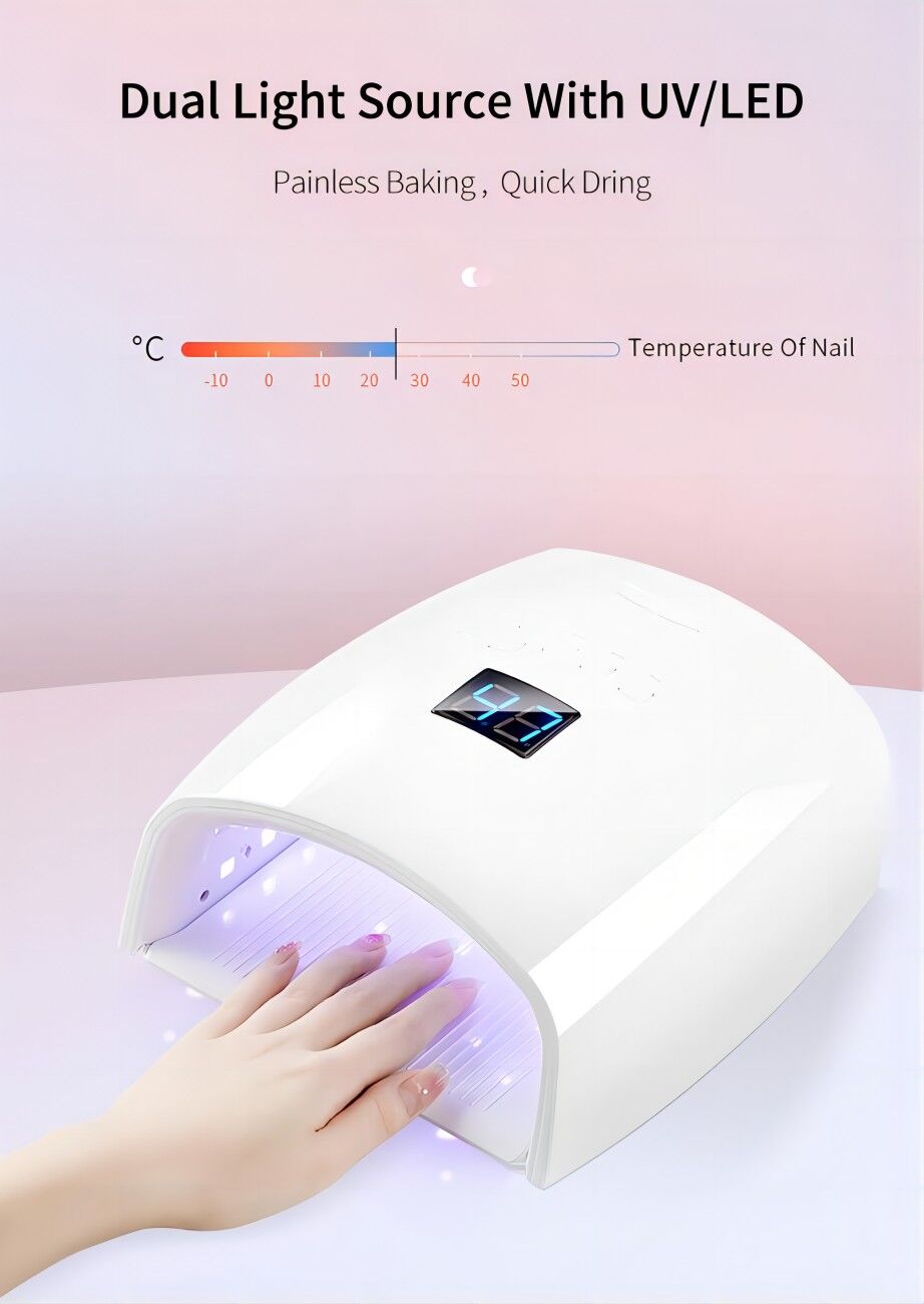 Description du produit HELEVIA Sèche-Ongles Gel 96W, 32 Puces Lumineuses, 4 Réglages de Temps, écran LED, Lampe de Polymérisation pour Vernis à Ongles, 100 240V (Prise UE) Lampe à Ongles - DRFEIFY - Modèle Gel UV - 51 Puces LED - 102W... Large application : sèche-vernis à ongles avec bandes lumineuses de 365 et 405 nm, peut sécher les ongles rapidement et uniformément, idéal pour les salons de manucure et un usage domestique. Lampe à UV LED 96W, Sèche-Ongles Portable, 4 Réglages De Minuterie, Capteur Automatique, Plaque De Base Amovible, Vernis Gel Pour De Beaux Ongles (Prise UE 4 minutages : lampe sèche-ongles avec 4 réglages de temps de 30 s, 45 s, 60 s, 99 s, qui vous permettent de régler librement en fonction des différents vernis à ongles. Séchage rapide : la lampe à polymériser les ongles avec une puissance de 96 W et 32 puces lumineuses offre une grande efficacité pour sécher rapidement tous les types de gels pour ongles et profiter de lart des ongles professionnel idéal facilement et librement à la maison. 4 RÉGLAGES DE TEMPS: La lampe à ongles a quatre réglages de temps de 30 s, 45 s, 60 s et 99 s, qui peuvent... Mini Sèche-Ongles, Lampe À Ongles En Gel 5 W Portable Usb 3 Pcs Puces Lorsque la machine obtient le temps sélectionné, le bouton de temps de travail souhaité peut être arbitrairement sélectionné à nouveau. Service prolongé : la queue de la lampe de polymérisation du vernis à ongles a adopté une conception creuse pour une dissipation rapide de la chaleur, fournit une protection du circuit pour prolonger la durée de vie.