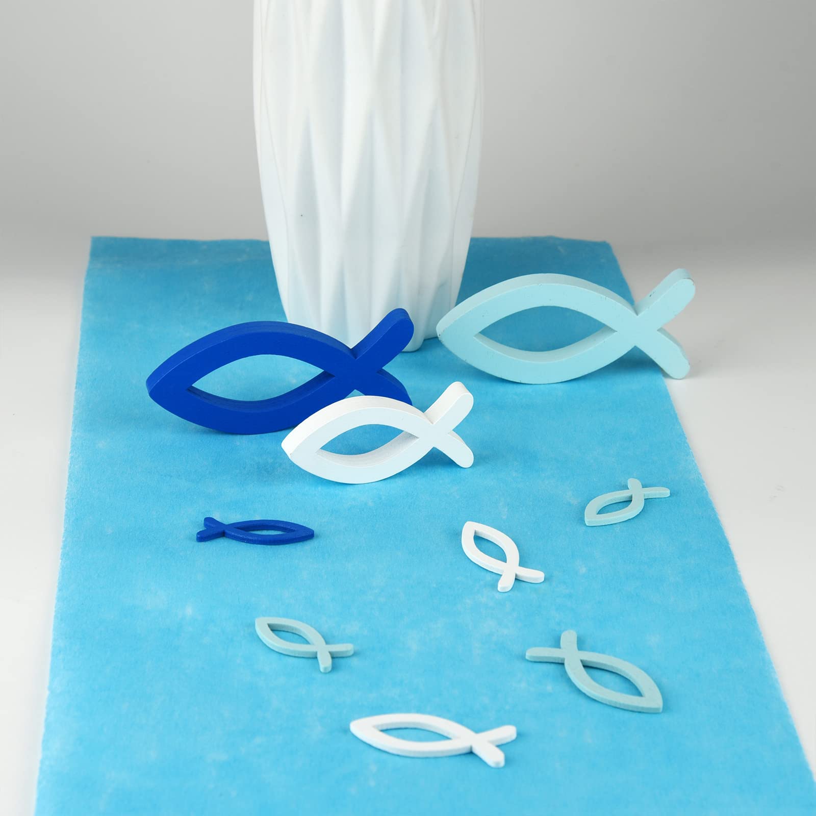 Décoration maritime adaptée à différents styles de vie Décoration De Table Poisson Maritime En Bois Naturel Bleu Blanc 8 9cm 8 Pcs Matériau : notre décoration de table en forme de poisson est en bois, sans peinture ni odeur, écologique et sans danger. Decoration Premiere Communion Décoration à Suspendre Mobile Poisson En Bois Flotté Et Galets 32cm Décoration Gris Bord De Mer Confettis Communion Ces élégantes figurines de poissons peuvent être utilisées de différentes manières : Meilleure décoration : peut être utilisé avec une nappe, étalé sur la table ou décoré seul ailleurs, cartes de vœux bricolées à la main, emballages cadeaux, etc. Comme éléments décoratifs lors de fêtes à thème maritime ou de célébrations de mariage. Description du produit Style 1 : 1 set contient 3 couleurs de poissons en bois (blanc, bleu, bleu clair), 35 pièces de chaque couleur, 105 pièces au total. Un service client 100% satisfaisant : Si vous avez des questions sur nos produits ou si vous rencontrez des problèmes après l'achat, n'hésitez pas à nous contacter par e-mail, nous vous répondrons dans les 24 heures et vous proposerons une solution raisonnable ! Découvrez comment cette figurine de poisson en céramique bleue deviendra le point culminant de vos idées de décoration maritime et rehaussera avec style votre espace de vie. En combinaison avec d'autres éléments maritimes de notre gamme chez Floristik24, tels que des coquillages ou des ancres, ils créent une image globale harmonieuse. Idéal pour la décoration des étagères du salon et du rebord de fenêtre de la salle de bain L'extrémité beige de la queue, décorée de grains de sable, offre un contraste charmant et naturel. Le poisson en bois nage joyeusement à travers les décorations de table ! Le petit poisson décoratif à poser est tout simplement le plus beau du style maritime. Alors que la tête du poisson est de couleur naturelle et montre le bois clair dans toute sa beauté, le corps bleu clair présente des rayures blanches. Cela signifie que le poisson en tant que support combine toutes les couleurs... Taille : environ 20 cm × 8 cm × 8,5 cm – Lot de 2 poissons Application : Idéal pour la décoration de table de baptême, bougies de baptême, bouteilles en verre de baptême, invitations de baptême, cadeaux de baptême, décoration simple mais unique. matériaux et fabrication Notre poisson en céramique bleu et beige est fabriqué en céramique de haute qualité, qui est non seulement robuste mais aussi particulièrement facile à entretenir. Taille : Chaque décoration de baptême de poisson mesure 3., 8 x 1., 6 cm.