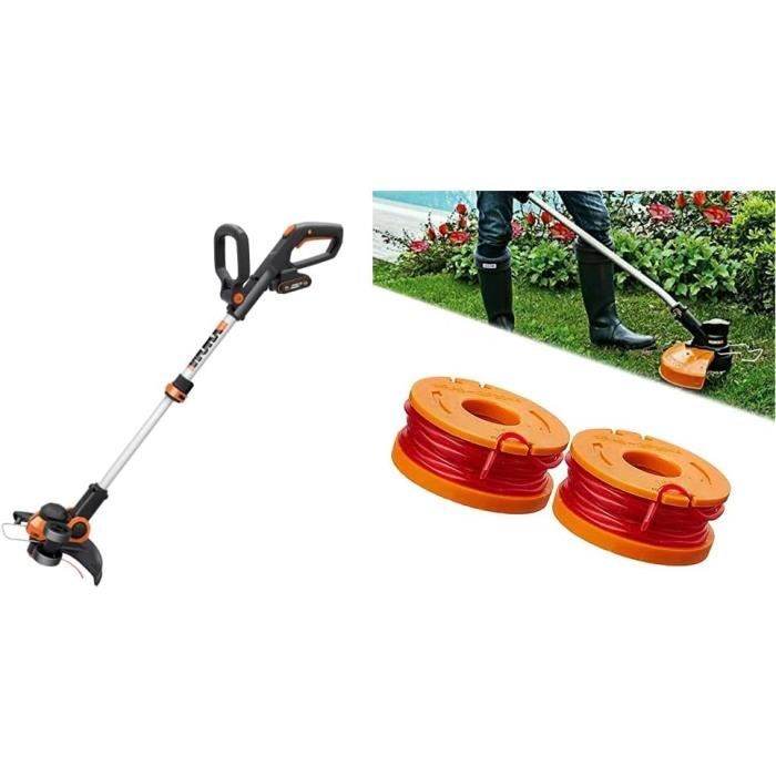 Bobine de fil de rechange - Bobine pour coupe-bordure avec capot assorti. Longueur du fil : 2 fois 2,75 m de fil par bobine (4,50 m au total) Vous pouvez maintenant travailler avec votre appareil exactement selon vos souhaits. Tondeuse Sans Sans Fil Avec Batterie 21V Brushless Débroussailleuse à Batterie Avec 2 Batteries Fil Coupe Bordure Accessoires – Corde en nylon de 2 mm de diamètre Longueur - 4,8 mètres par rouleau Compatibilité – Compatible avec les coupe-bordures Greenworks GST1246, GD40BC, GD40BCK2x et GD40BCB Comprend - une bobine avec du fil de débroussailleuse Greenworks – Découvrez une sélection variée de produits pour votre jardin et votre atelier MOTEUR AVEC ENGRENAGE POUR COUPE BORDURES / TAILLES HAIES SANS FIL... Vous recevrez d'autres pièces de rechange pour cet appareil auprès de votre fabricant., Étape 1., Placez le couvercle de la bobine sur la bobine de coupe-bordure dans les œillets prévus à cet effet., Étape 2., Placez maintenant la bobine de fil assemblée et le capot sur la capsule jusqu'à ce que vous puissiez entendre un son enclenché. Les coupe-bordures peuvent être alimentés par l'électricité (filaire ou sur batterie) ou par un moteur à essence, et ils utilisent une tête rotative avec un fil... Remarque : Pour garantir une utilisation sûre et un entretien de la pelouse, veuillez respecter les consignes de sécurité et les instructions de montage dans le manuel d'utilisation du fabricant d'origine., Grizzly Tools. Bobine de fil de rechange pour coupe-bordures sans fil Grizzly Tools CT 2000 Tête faucheuse TrimCut C 51-2 - Stihl 4005 710 2104 - Tête à fil pour débroussailleuse FS511, FS