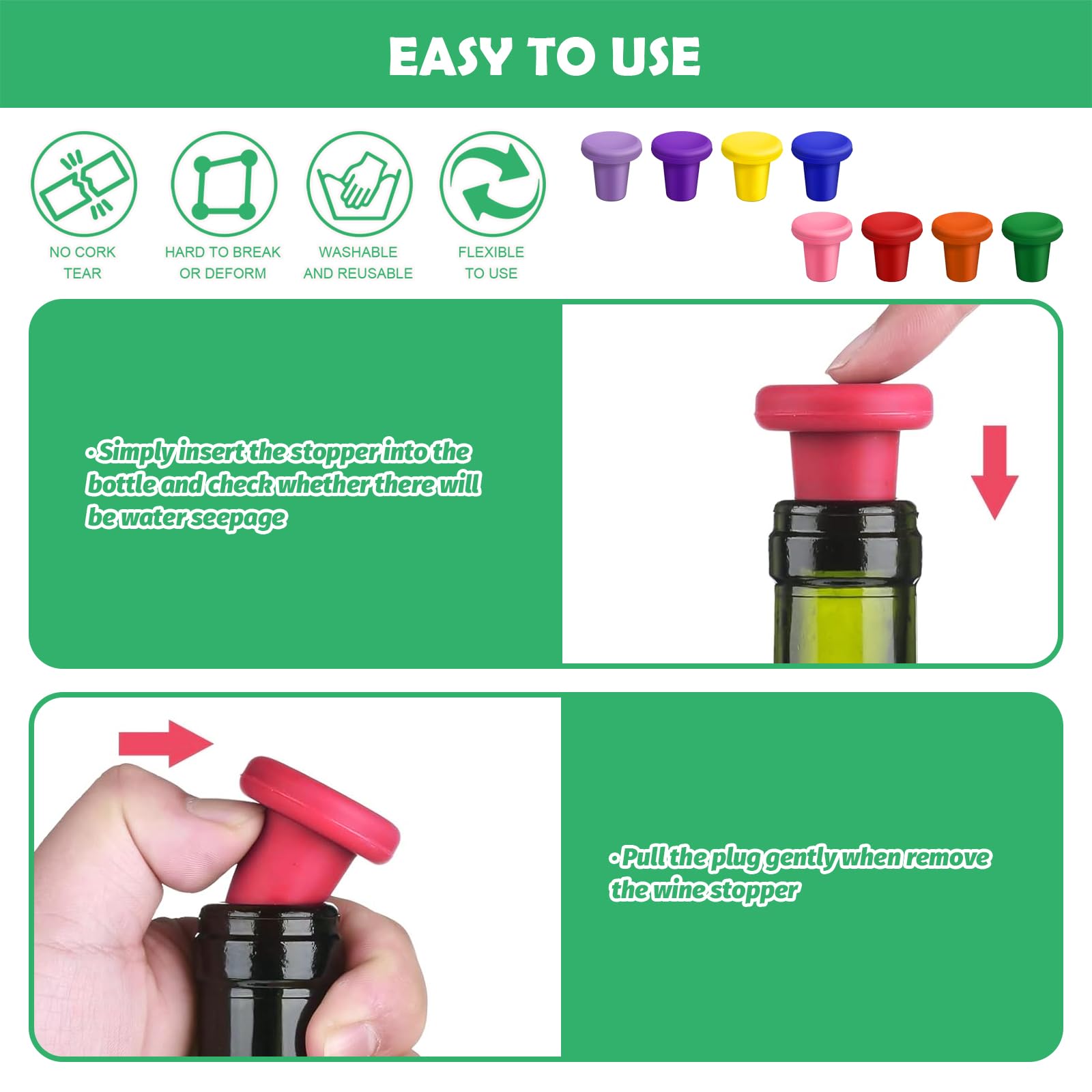 Lot de bouchons de vin et de champagne étanches - En silicone durable - Pour la maison, le bar, le restaurant, les festivals et les célébrations du Nouvel An A maison - bouchon anti-poussière nécessaire pour le bec verseur de bouteille de vin. 10 x couvercles de bec verseur de bouteille. 6 Pcs Bouchon Bec Verseur... Performance d'étanchéité exceptionnelle : la construction en silicone fournit un joint hermétique qui empêche efficacement les fuites et préserve l'arôme et la saveur de votre vin ou champagne, vous permettant de savourer chaque goutte sans aucun gaspillage. Lot De 3 Bouchons De Vin étanches Pour Champagne - En Silicone Disponible dans un assortiment de couleurs, y compris rouge, noir et marron, il garde non seulement votre vin frais, mais ajoute également une sensation de style à votre collection de vins, simplifiant l'identification de la bouteille. Lot de 2 paires de bouchons d'oreilles étanches réutilisables en... Lot de 24 bouchons réutilisables de luxe en forme de couronne pour cuisine, bar, mariage, anniversaire, Noël, vacances d'été, cadeaux de fête (bouchon couronne, 24 Polyvalent, convivial et élégant : ce bouchon à vin est conçu pour un fonctionnement sans effort, s'adapte à différents types de bouteilles avec son mécanisme de traction et de poussée. Design compact mais efficace : avec des dimensions de 5 x 4,2 x 3,8 cm, ce bouchon est conçu pour être peu encombrant et très fonctionnel, ce qui en fait un ajout indispensable à tout bar ou cuisine pour un rangement et une utilisation faciles.
