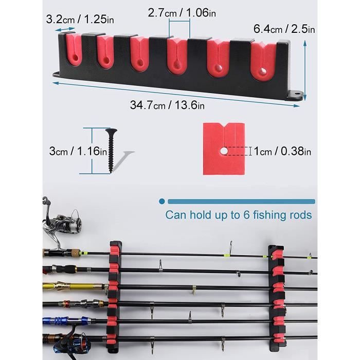 Application large: Convient pour être installé dans de nombreux endroits, comme le garage, la salle de jeu, le restaurant, le bar, le club, la salle de billard, le salon de coiffure et plus encore. Lot de 2 supports pouvant accueillir jusqu'à 6 cannes au total. Chaque support mesure environ 34,5cm. Matériau ABS de qualité, résistant aux chocs, à la chaleur... THKFISH Supports de canne à pêche - Support mural horizontal Et vous pouvez ajuster la distance entre les deux racks de canne à pêche en fonction de vos besoins. Porte Canne à Peche Supports Muraux Canne à Pêche SAVITA - Lot 2 Pour 6 Cannes Support Pour Canne à Pêche Principaux points forts · Matériau. Eva · Couleur. Noir · Caractéristique spéciale. Résistant à la rouille · Dimensions du produit. 6,4P x 34,5l x 34,5H centimètres (Remarque: Ajustement pour les cannes à pêche avec le diamètre de 0,2 -0,4 / 5-11 mm., ) Facile à installer: il vous suffit d'installer les porte-canaux de pêche sur le mur avec les 4 vis venant avec le paquet.