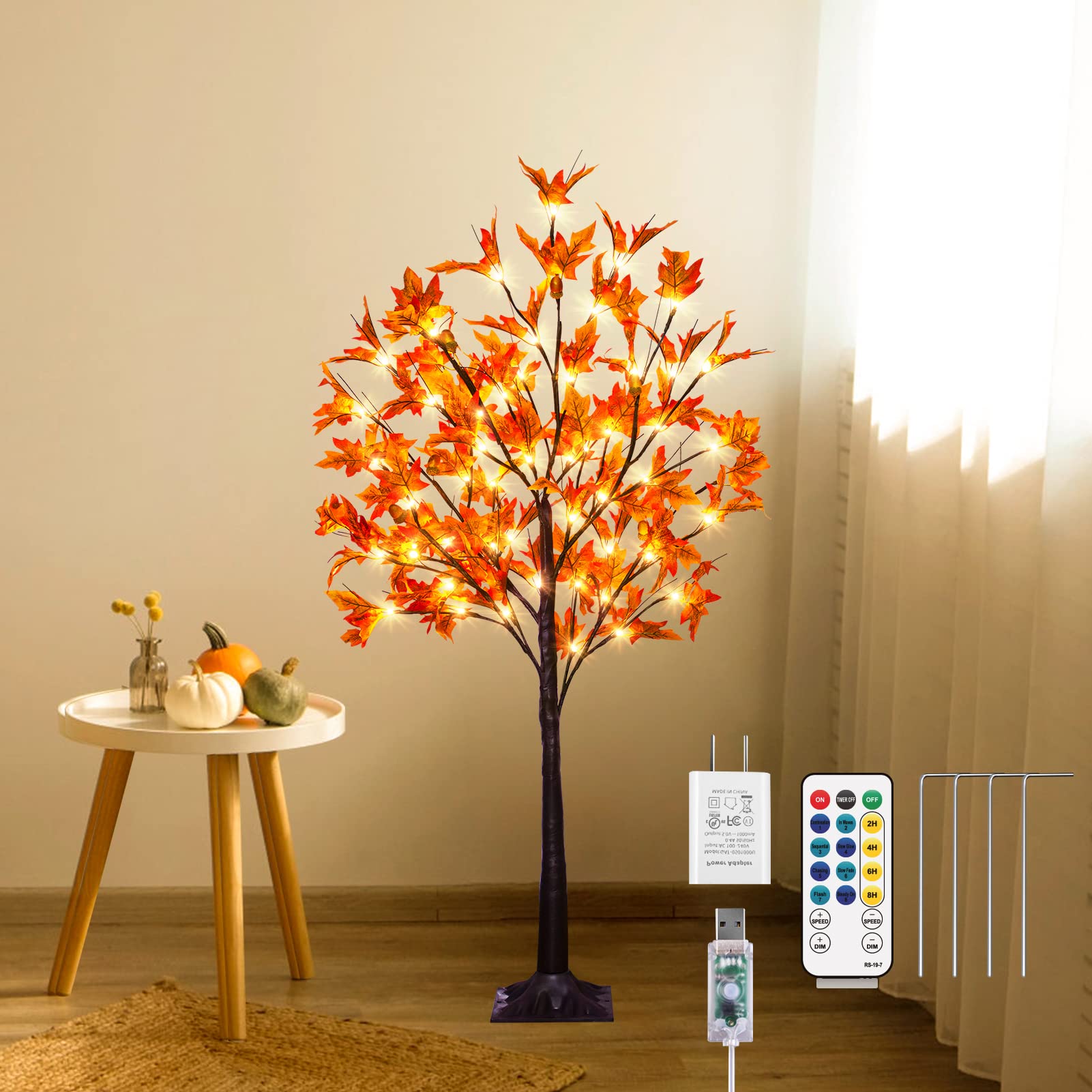Nombre de lumières : 72 LED (66 LED + 6 lumières citrouille)., Poids : 1 kg. Base en métal, alimentation USB, design exclusif en forme de citrouille 3D Tension : 4,5 V basse tension. Les décorations d'arbre d'automne sont fabriquées en soie, métal et composants électroniques. Projecteur Ciel Étoile, LED Lampe Projecteur Galaxie, 24 Effets Lumineux Télécommande Minuterie... Guirlande Lumineuses GENERIQUE Décorations De Thanksgiving Allumé La Guirlande Lumineuse De Fonction minuterie : utilisez la télécommande à 8 touches pour l'allumer/l'éteindre. Feuilles d'érable : 10,2 cm. Couleur du produit : orange. Branches réglables ; configuration à faire soi-même requise Lot de 3 bougies LED feuille d'érable, blanc chaud, sans flamme, alimenté par batterie, mèche... Télécommande et minuterie et 8 modes : appuyez sur le bouton USB ou la télécommande pour sélectionner 8 modes, combinaison, vagues, séquentiel, lueur lente, poursuite, fondu lent, flash, fixe. Autres caractéristiques : IP44 étanche (USB n'est pas étanche), minuterie, DIM. Scènes applicables : décoration d'automne, porte d'entrée, cheminée, patio, rebord de fenêtre, chambre, allée, extérieur, décoration d'automne intérieure. Érable lumineux à 90 DEL de 1,5 m – Arbre artificiel avec 9 8 modes d'éclairage : combinaison, vagues, séquentiel, lueur lente, poursuite, fondu lent, flash, continu. Guirlande lumineuse 3D en forme de citrouille en érable de 1,5 m : 66 LED blanc chaud et 6 lumières citrouille (72 LED au total), 144 grandes feuilles d'érable de 10,2 cm, 18 branches. Fil de plomb : 1,8 m. Citrouille : 2,5 x 1,5 cm (l x H). Apparence : 66 LED + 6 lumières citrouille + 144 feuilles d'érable + 9 grandes branches (18 petites branches). Cette guirlande lumineuse d'automne gardera 6 heures allumées et 18 heures éteintes automatiquement toutes les 24 heures une fois la minuterie activée., Pratique à utiliser. Décorations d'intérieur et d'extérieur pour l'automne et l'Action de grâce : automne, Thanksgiving, Halloween, décorations d'intérieur et d'extérieur pour la maison, le porche, le hall, le pub, l'allée, le jardin, la pelouse, la décoration de mariage, etc.