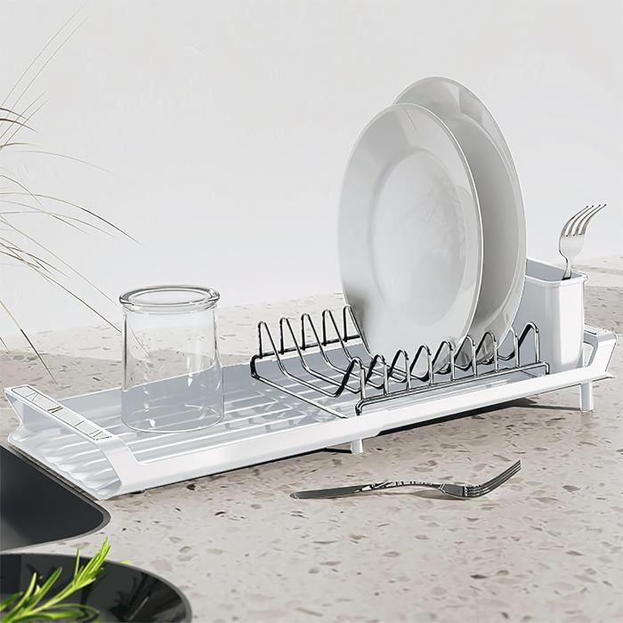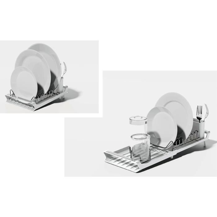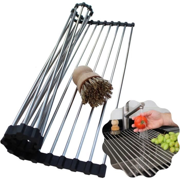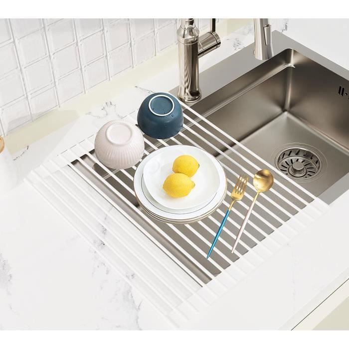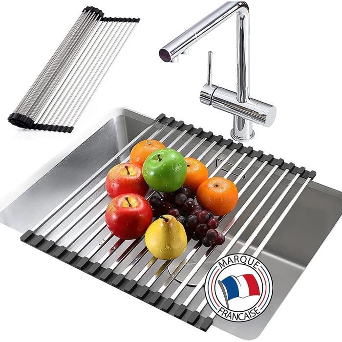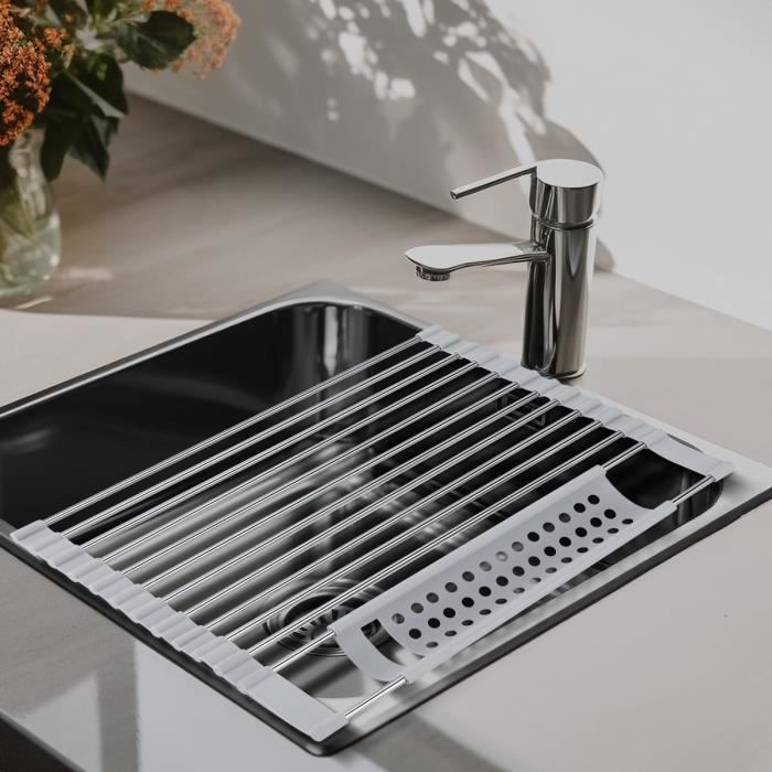 MATÉRIAU DE HAUTE QUALITÉ - Égouttoir à vaisselle pliable en aluminium, léger et pratique, les bords sont recouverts de silicone, antidérapants et antichute, et peuvent être placés de manière stable sur l'établi Egouttoir Vaisselle Gifi 43 X 35 Cm Egouttoir Vaisselle Pliable, Séchoir Vaisselle Énroulable, Egoutoire Evier Cuisine Egouttoir Biberon FORTE CAPACITÉ DE CHARGE - Nnotre egouttoir evier cuisine est très intelligemment conçu et peut facilement supporter des ustensiles de cuisine, pas facilement déformable, robuste et peut être utilisé pour divers ustensiles de cuisine Egouttoir Vaisselle Cuisine, Séche-vaisselle Pliable 24 x 37 cm, Noir, Rangement Pratique pour... Égouttoir d'évier extensible en acier inoxydable pour sécher les couverts et la vaisselle, égouttoir à fruits, gris, 28 x 22,5 x 9 cm | Leroy Merlin Dimensions (ouvert) 36,5 × 31 × 12 cm Dimensions (fermé / replié) 36,5 × 31 × 6 cm Poids ~ 980 g Couleur Blanc / gris (White/Grey) Matériau : Plastique robuste adapté au camping / caravanning ; avec support pour couverts intégré. Construction durable : Fabriqué en acier inoxydable 304 de qualité supérieure et en silicone, cet égouttoir à vaisselle est étanche et supporte jusqu'à 10 kg. Il est donc difficile à plier ou à tordre avec des ustensiles de cuisine lourds. Son revêtement en silicone offre une durabilité accrue et empêche tout glissement, offrant une solution fiable pour sécher la vaisselle, les... FACILE À NETTOYER ET À RANGER - Egoutoire vaisselle cuisine pliable conception monobloc sans couture, sans bords ni coins, sans saleté ni crasse, facile à nettoyer, conception enroulable, facile à plier et à ranger lors de l'utilisation TAILLE - Égouttoir pliable mesure 42 x 34 cm et peut être coupé pour s'adapter à votre surface de travail afin que vous n'ayez pas à vous soucier du surdimensionnement