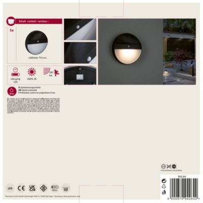 La lampe solaire Ilias anthracite apporte de la lumière à vos murs extérieurs. Luminaires extérieurs Applique murale Enkara 0,2 W | 8720169265462 | Philips Protection contre les projections d'eau – Protection IP44 : pour pièces humides ou pour l'extérieur. Température de couleur – 3000 K Paulmann Applique Murale Solaire Adya Noir | 2.5 W Acheter Chez Éclairage rond - La lumière Paulmann est leader dans le secteur de la lumière et offre des luminaires aux systèmes lumineux, en passant par une gamme complète d'ampoules avec de nombreuses solutions spéciales. 94260 Ilias Applique Murale Solaire Led D'Extérieur Rectangulaire Avec... Pendant la journée, la batterie se recharge par la lumière du soleil et au crépuscule, une petite lumière d'orientation se déclenche dès que quelqu'un approche. Capteur de mouvement : si le détecteur de mouvement perçoit des personnes à proximité, la lumière de fonctionnement est activée. Protection contre les projections d'eau – Protection IP44 : pour pièces humides ou pour l'extérieur. Applique murale adaptée aux murs de la maison et aux espaces d