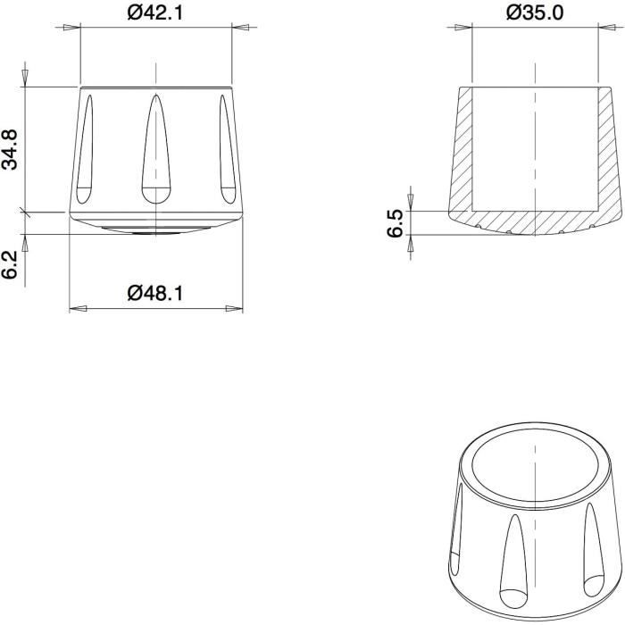 Pour des composants en plastique et en caoutchouc de qualité, optez pour l’achat en ligne d’embouts ajile ! Insérer l’embout bien à fond dans le pied/tube. Nuestra gama de modelos de inserción incluye tapas para tuberías de cualquier sección transversal imaginable: redondas, cuadradas, rectangulares. Los modelos de inserción están hechos de goma, plástico, en una versión especialmente robusta (intensiva) y de fieltro Aucun outillage n’est nécessaire, vous pouvez néanmoins vous aider d’un maillet en bois si besoin. A destination des professionnels, collectivités et particuliers, les différents modèles d’embouts plastiques et d’embouts caoutchouc disponibles à la vente pourront répondre à différents besoins. Et quelle mesure je dois prendre ? Description du produit Découvrez nos embouts Ajile Robuste et Antidérapant, Supporte 75 kg par Pied Les modèles enveloppants se déclinent en caoutchouc, en plastique, en version très résistante (intensif) et en feutre, il s’agit tous d’embouts pour tube rond. Robuste et Antidérapant, Supporte 75 kg par Pied · La Forme Bombée Compense l'Inclinaison Éventuelle du pied · Caoutchouc Vulcanisé Antidérapant, Adapté à l'Usage... Épais Caoutchouc Naturel, Fabrication Européenne de Qualité Embout Pied De Chaise Embout Enveloppant En Caoutchouc Diamètre 25mm, 2 Pièces Embout Pieds De Chaise Caoutchouc Au sein de la gamme de modèles pénétrants, vous retrouverez des embouts pour tube de toutes formes : ronds, carrés, rectangles. Ajile propose au sein de sa quincaillerie plastique en ligne, le plus grand choix d’embouts pour pieds de chaise et pieds de meuble. Lorsque vous MESUREZ la dimension du pied/tube de chaise/meuble, prendre toujours en compte la DIMENSION EXTÉRIEURE DU TUBE. Les embouts en plastique ou caoutchouc entrants sont à insérer pour une plus grande discrétion tandis que les embouts caoutchouc ou plastique enveloppant viennent se fixer autour du tube pour une résistance et un amortissement à toute épreuve. Embout Rond Bombé Antidérapant NOIR diamètre 25 mm