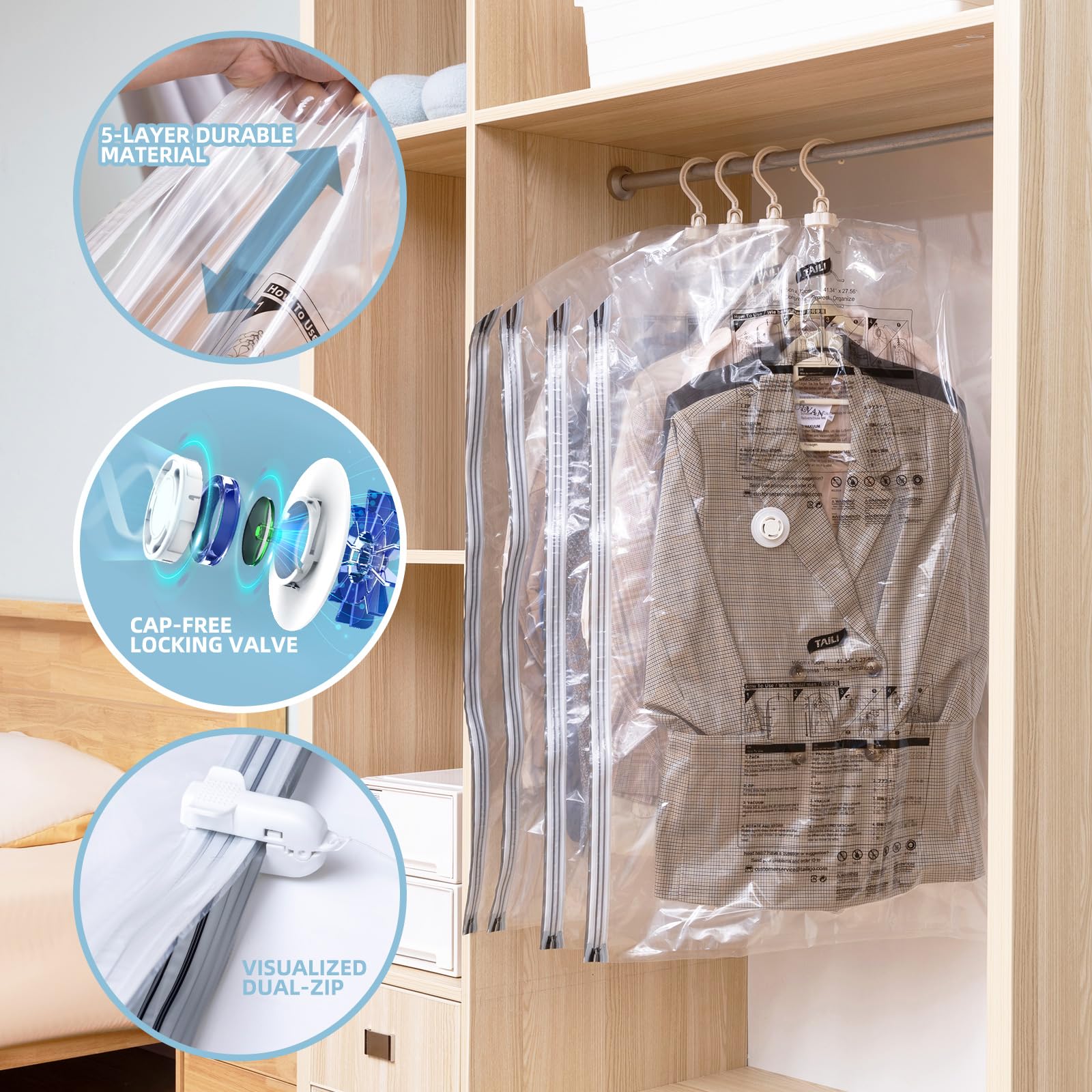 [Comprend 6 sacs de rangement à suspendre] 6 paquets de taille courte (105 x 70 cm) avec 4 curseurs pour sceller, assez longs pour vous permettre de ranger des vestes courtes en duvet, des robes, des costumes ou des vêtements pour enfants. BNGXR Sacs de Rangement sous Vide, 5 pièces 67 X 110CM Sacs de [Pas besoin de plier les vêtements] Avec 5 anneaux circulatoires suspendus, il suffit d'emballer 5 couches avec 1 sac sous vide suspendu sans plier, en raison de la conception verticale, vos vêtements seront stockés de manière ordonnée, dites non aux plis. Sac Pour Vetement Sous Vide TAILINK Lot De 6 Sacs De Rangement Sous Vide à Suspendre (104,9 X 70,1 Cm), Sacs à Vêtements Pour Vêtements Courts, Vestes, Costumes, Robes Sac Sous Vide Cdiscount Sur la base de sacs économiseurs d'espace suspendus, créant un état de stockage hermétique, imperméable et résistant à la poussière pour vos vêtements et robes. Créez un espace de rangement hermétique, étanche et anti-poussière pour vos vêtements et couettes Le super sac cube peut maintenir une forme cubique... TAILINK s'engage à vous offrir une expérience d'achat satisfaisante. Le crochet rotatif à 360 degrés permet au sac de s'adapter à toutes les armoires. Avec une pompe à air électrique portable, nos sacs de rangement sous vide suspendus protègent vos vêtements, que vous soyez en voyage d'affaires ou en voyage.