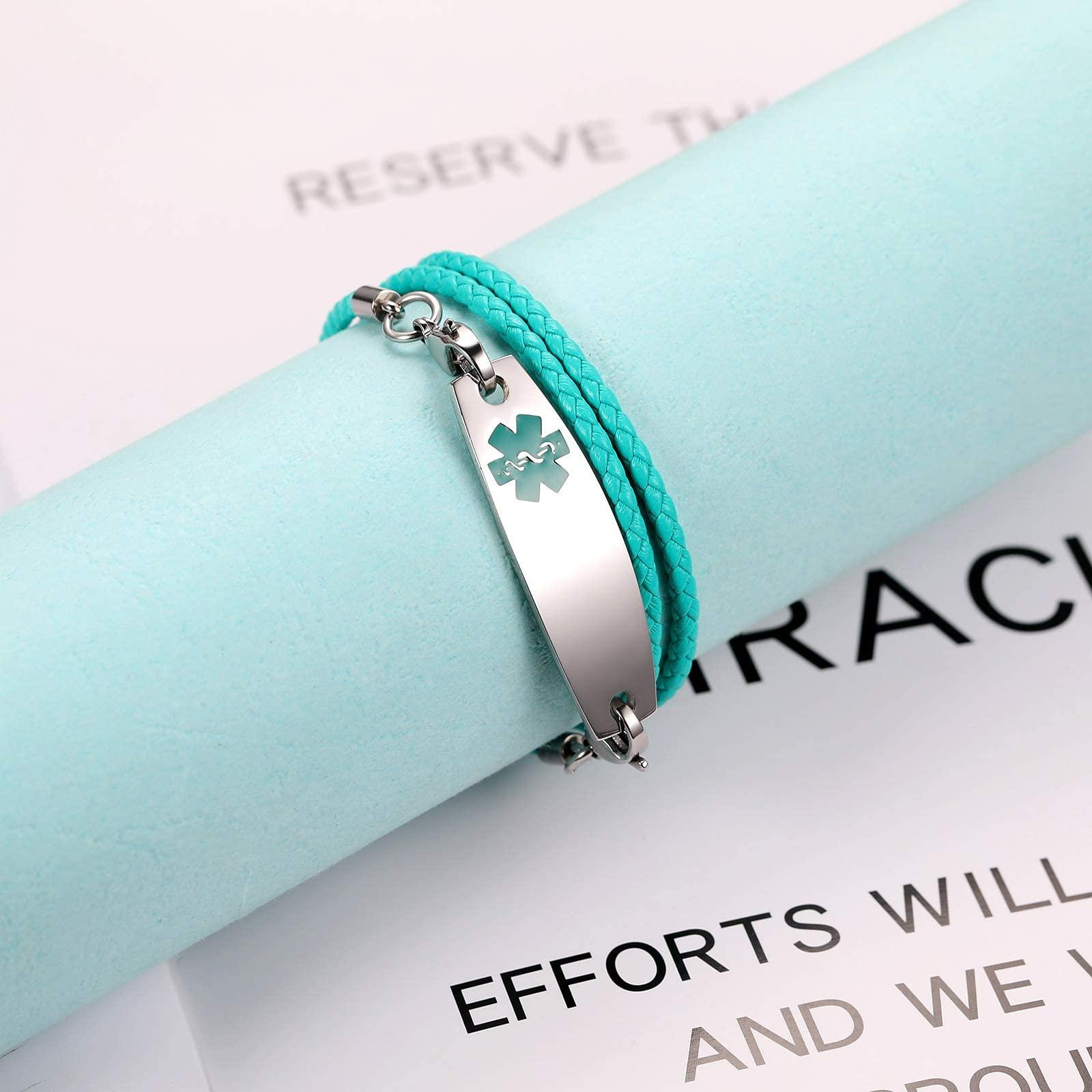 MOWOM Medical : Meilleurs 10 produits de bijoux marque Pourquoi acheter chez nous? Gravure au laser gratuite de première qualité: lettrage en gras et contrasté Comprend une carte médicale d'urgence gratuite avec pochette Comprend un coffret cadeau de qualité supérieure Carte médicale d'urgence La carte médicale d'urgence dispose de plusieurs salles pour les informations personnelles, les conditions médicales, les médicaments, les contacts d'urgence et les allergies. Comment personnaliser Cliquez sur le bouton jaune à droite 'Personnaliser maintenant' Remplissez vos informations de gravure exactement comme 'votre nom, toutes les conditions que vous pouvez avoir, allergies médicamenteuses et alimentaires, médicaments que vous prenez, vos contacts en cas d'urgence (ICE)', etc. ★ SAUVEZ DES VIES EN CAS D'URGENCE - Les personnes atteintes des conditions suivantes doivent porter un bijou d'identification médicale: diabète, épilepsie, autisme, allergies, coumadine, waffarine, cardiopathie, stimulateur cardiaque, asthme, copd, accident vasculaire cérébral, cancer, sclérose en plaques, maladie pulmonaire de dialyse , ajouter / adhd, la maladie d'Alzheimer, l'hypertension artérielle, les enfants ayant des besoins spéciaux, etc. MOWOM Medical Custom Gravé Silicone Réglable Sport Nom Id Identification 143875 Le porte-carte est étanche à l'usure et à la corrosion qui protège efficacement votre carte. ★ SPÉCIFICATIONS DU PRODUIT: MATÉRIAU - Silicone et acier inoxydable 316L, résistant à la corrosion, résistant aux allergies aux métaux / latex, résistant aux températures élevées, imperméable à l'eau, confortable à porter, adapté à un usage quotidien, en plein air ou au sport. Il aide à sauver des vies et offre une tranquillité d'esprit inestimable en indiquant aux premiers intervenants la meilleure façon de prendre soin de vous en cas d'urgence. Ce n'est que le format de carte de crédit après pliage qui peut être facilement mis dans votre portefeuille. une urgence leur permettant de vous soigner rapidement et en toute sécurité. Achetez MOWOM Medical Custom Gravé Silicone Réglable Sport Nom ID Identification Alerte Bracelet Médical pour Hommes Femmes Enfants en Acier Inoxydable... (Taille de la carte de crédit après avoir plié) La carte porte un logo bleu 'Étoile de la vie' facilement reconnaissable par les intervenants médicaux.