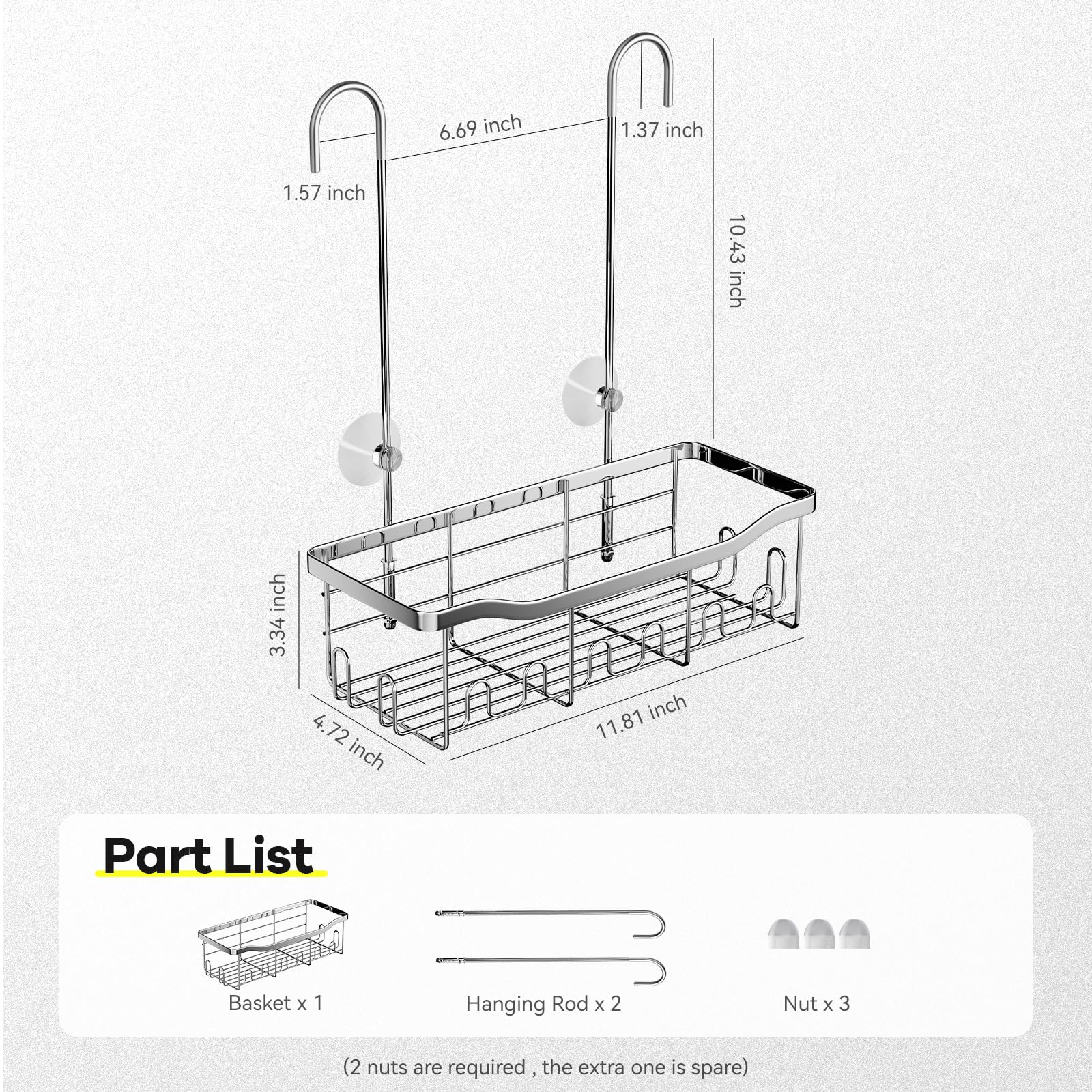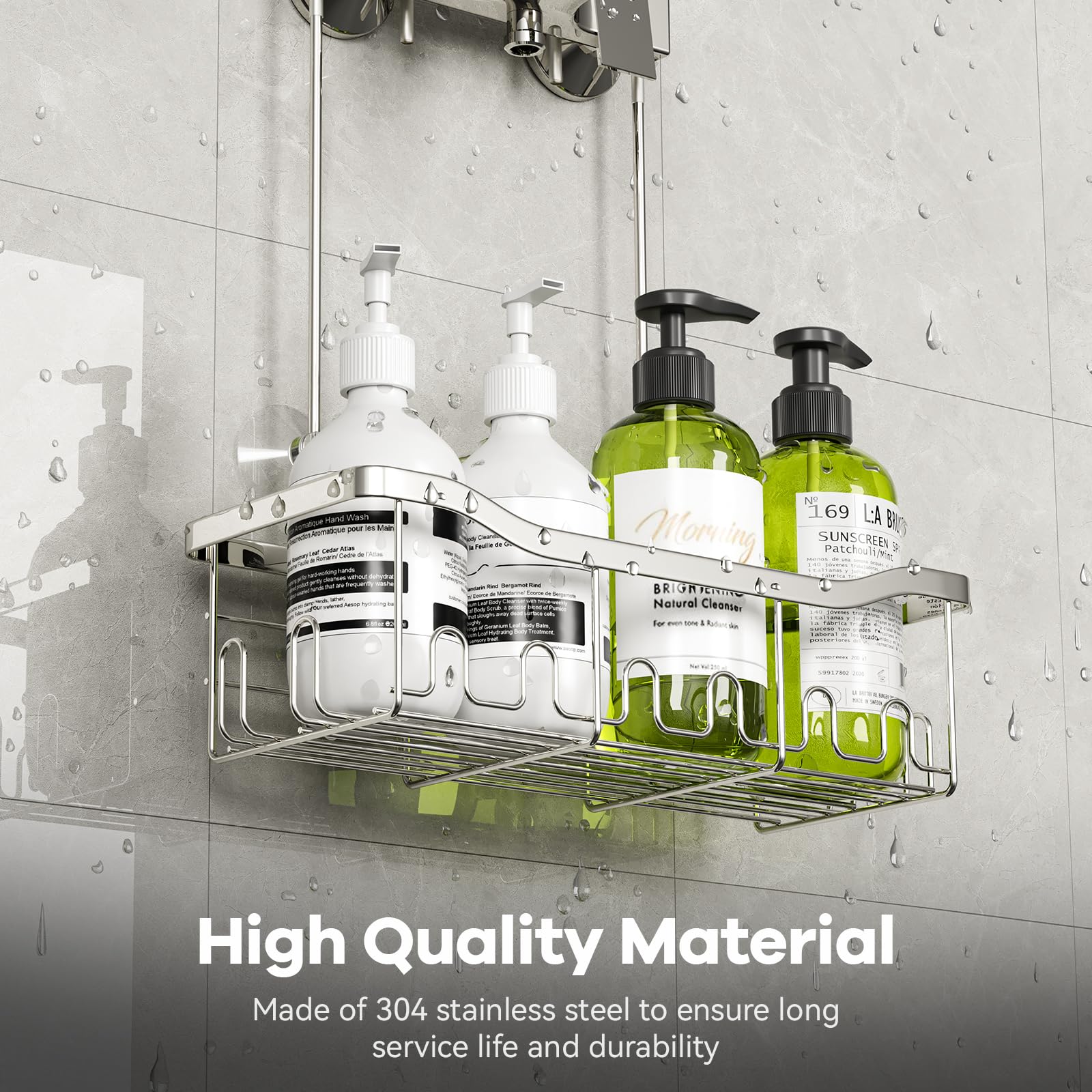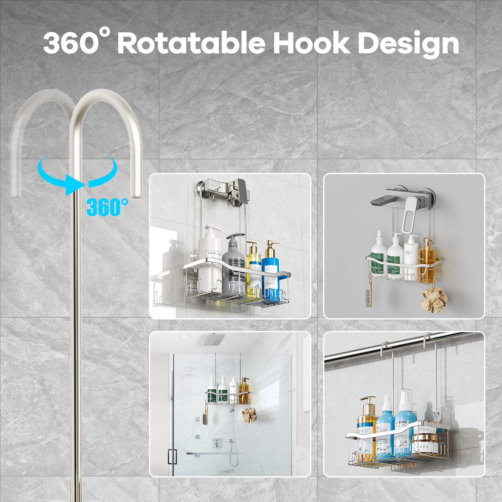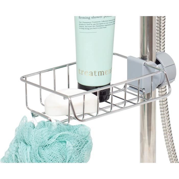 BYT Panier de douche à suspendre pour salle de Le design élégant et simple de cette étagère de douche s'adapte à tout type de décoration d'intérieur. Panier de douche suspendu : le design du crochet rotatif à 360° élimine le besoin de fixer l'étagère de douche au mur, de sorte qu'elle n'endommagera plus le mur et ne tombera plus. Idéal pour les accessoires de douche : cette étagère de douche suspendue pratique offre un espace de rangement supplémentaire sans prendre de place sur le sol, assurant l'ordre dans votre salle de bain. Panier De Douche Extérieur BYT , Panier Avec Crochets, étagère De Rangement Sans Perçage, Support Pour Robinet De Douche Ou Barre Transversale (argenté Panier De Douche à Suspendre Grande capacité : le panier de salle de bain suspendu offre un grand espace de rangement. Facile à utiliser : l'étagère de douche suspendue est fabriquée en acier inoxydable de haute qualité, ce qui garantit une longue durée de vie et une excellente durabilité. Parfait pour tous les accessoires de douche. Cet organisateur de douche rotatif peut être accroché sur la porte, sur le pommeau de douche, la barre de serviette et la tringle à rideau. Les crochets incurvés des tiges sont conçus avec un revêtement en caoutchouc pour éviter de rayer le robinet d'eau. Tablette Salle De Bain Etagere Murale De Salle De Bain Etagere... Le panier de rangement en acier inoxydable utilise pleinement l'espace vertical, économisant de l'espace tout en gardant votre salle de bain bien rangée et organisée chaque jour.