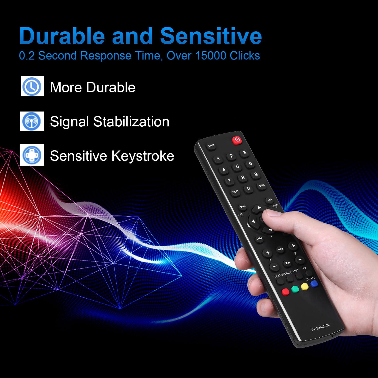Idéal pour remplacer votre télécommande cassée ou simplement comme une télécommande de rechange. Format de pile(s) : AAA Nombre de marques compatibles : 2 Télécommande Essentiel B : Non Type d'alimentation : Piles Format de pile(s) : AAA Nombre de marques compatibles : 2 Télécommande Essentiel B : Non Type d'alimentation : Piles Parfaitement remplacer vos dommages ou ancien et., Livraison rapide gratuite! Modèles compatibles: pour TCL RC3000E02 RC2000E01 RC3000E01 LED32S4690 LED40S4690 LED48S4690 LED55S4690 06-RC3000E-RM202AA F22B3903 F40S3804 F50S3803 F55S3803 H24E4404R H32D4026 H32E4403 L19E4103 L24D3260F L24D3270 L32D3260 L32D3300C L32E3000C L32E3003 L32E3004 L32E5300 L32F3390C L32F3393 L32M11PVR L32P60U L32S4603 L39E3000FC L39F3300FC L40E3000F L40E3003F L40E3005F L40E5200F L40M11FPVR L40P60UF L42E5300F L46E5300F L48F3300F RC3000E03 etc. Contenu de l'emballage : 1 télécommande (pile non incluse). RC3000E02 Télécommande Remplacé pour TCL TV RC2000E01 RC3000E01 Remote Control., Aucune installation requise. Garantie de 90 jours avec un excellent service de retour. Modèle compatible : pour TCL RC3000E02 RC2000E01 RC3000E01 LED32S4690 LED40S4690 LED48S4690 LED55S4690 06-RC3000E-RM202AA F22B3903 F40S3804 F50S3803 F55S3803 H24E4404R H32D4026 H32E4403 L19E4103 L24D3260F L24D3270 L32D3260 L32D3300C L32E3000C L32E3003 L32E3004 L32E5300 L32F3390C L32F3393 L32M11PVR L32P60U L32S4603 L39E3000FC L39F3300FC L40E3000F L40E3003F L40E3005F L40E5200F L40M11FPVR L40P60UF L42E5300F L46E5300F L48F3300F RC3000E03 etc. Plus grande distance de transmission, une performance stable. Tcl Telecommande RC3000E02 - Control Remoto De Repuesto Para TCL TV L32D3260 L32E3003 L32P60U L32S4603 L42E5300F LED48S4690 F40S3804 F50S3803 F55S3803 H32E 4403 L40E3003F L40P60UF L19E4103 L24D3260F L46E5300F Télécommande Tcl Remplacement de la télécommande universelle pour TCL RC3000E01, RC3000E02, 08-RC3000E-RM201AA, TLC-925 RC200 Thomson ERISSON · 2,87€. 8 vendus 5. Télécommande... FOXRMT Remplacement Telecommande TCL RC902V pour TCL Smart TV 4K UHD QLED TV (Pas de Fonction vocale,Aucun Réglage Requis