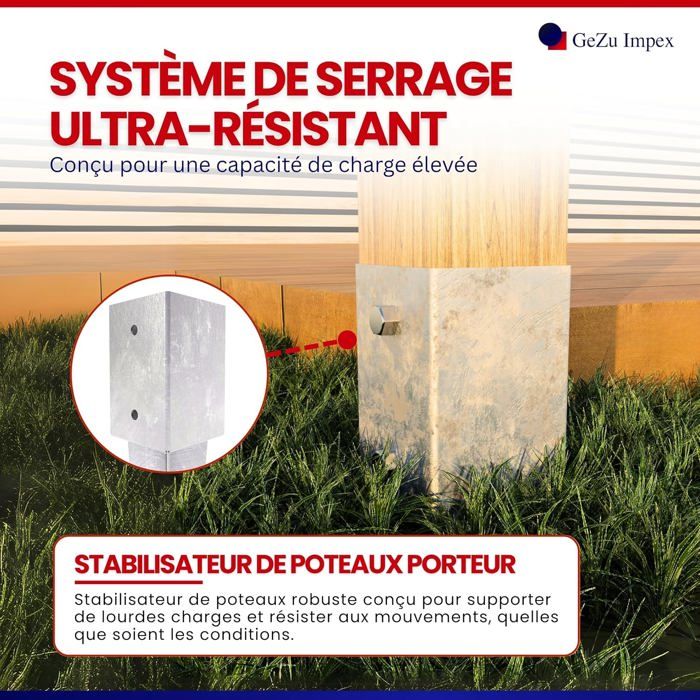 PRODUIT - Les supports de poteau en U avec pin en T fixation grillage rigide sur poteausont très utilisés dans l'horticulture. DETAILS TECHNIQUES - Largeur de fourche / largeur libre : 71 mm - Hauteur de fourche : 200 mm - Profondeur de fourche : 50 mm - Épaisseur de fourche : 5 mm - Trous : 4 Ø 11 mm - Longueur de la broche en T : 200 mm, Type de matériau : acier galvanisé à chaud. Support Poteau En U Pour Tige De Scellement En Acier Galvanisé L. 105 X L 101 X Prof 60 Mm Les supports sont conçus pour une utilisation en extérieur et disposent d'une bonne protection contre la corrosion grâce à leur laquage. Les supports de poteau... Nos fixation grillage rigide sur poteau sont bien protégés contre les intempéries extérieures grâce à leur galvanisation à chaud. Support De Poteau à Enfoncer POTEAU SUPÉRIEUR - Ht. : 1,50 M - Support Planche - Galvanisé à Chaud Ancre De Poteau Une fois ancrés, les poteaux en bois peuvent être facilement fixés à l'aide de vis à bois adaptées. POLYVALENCE - La fourche a une hauteur de 200 mm et est fabriquée en acier galvanisé à chaud de 5 mm. Les supports avec broche en T sont disponibles dans les largeurs de fourche suivantes : 71 mm, 91 mm. Fixation de poteaux Galvanisé à chaud en U Index Connecteurs bois...