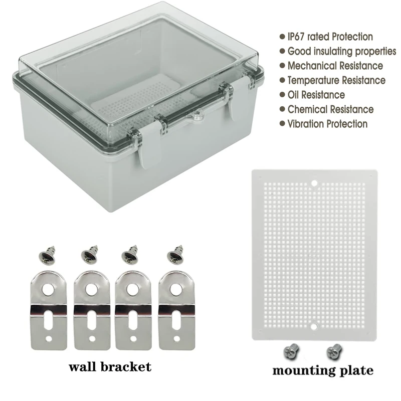 Matériau ABS de haute qualité, léger et robuste, les sorties de câble peuvent être facilement percées Comprend un panneau de montage pour une installation facile de carte PCB, terminal ou tout autre composant électrique qui doit être fixé sur Boîtier électrique étanche IP67 Boîtier électrique Extérieur Boîte de Jonction avec Couvercle à Charnière Pince en Plastique pour Bricolage Gris : : BricolageÀ propos de cet article Clip en plastique: Les clips en plastique maintiennent une bonne étanchéité à l'eau et sont faciles à ouvrir et à fermer, ce qui peut fournir une bonne protection pour votre équipement... Boîtier De Boîte De Jonction En Plastique, Boîte électrique Extérieure Fdit Boîtier de boîtier de projet électrique Boîte de jonction Boîtier Couvercle à charnière simple, facile à ouvrir et à fermer, loquets en acier inoxydable pour garder une bonne étanchéité
