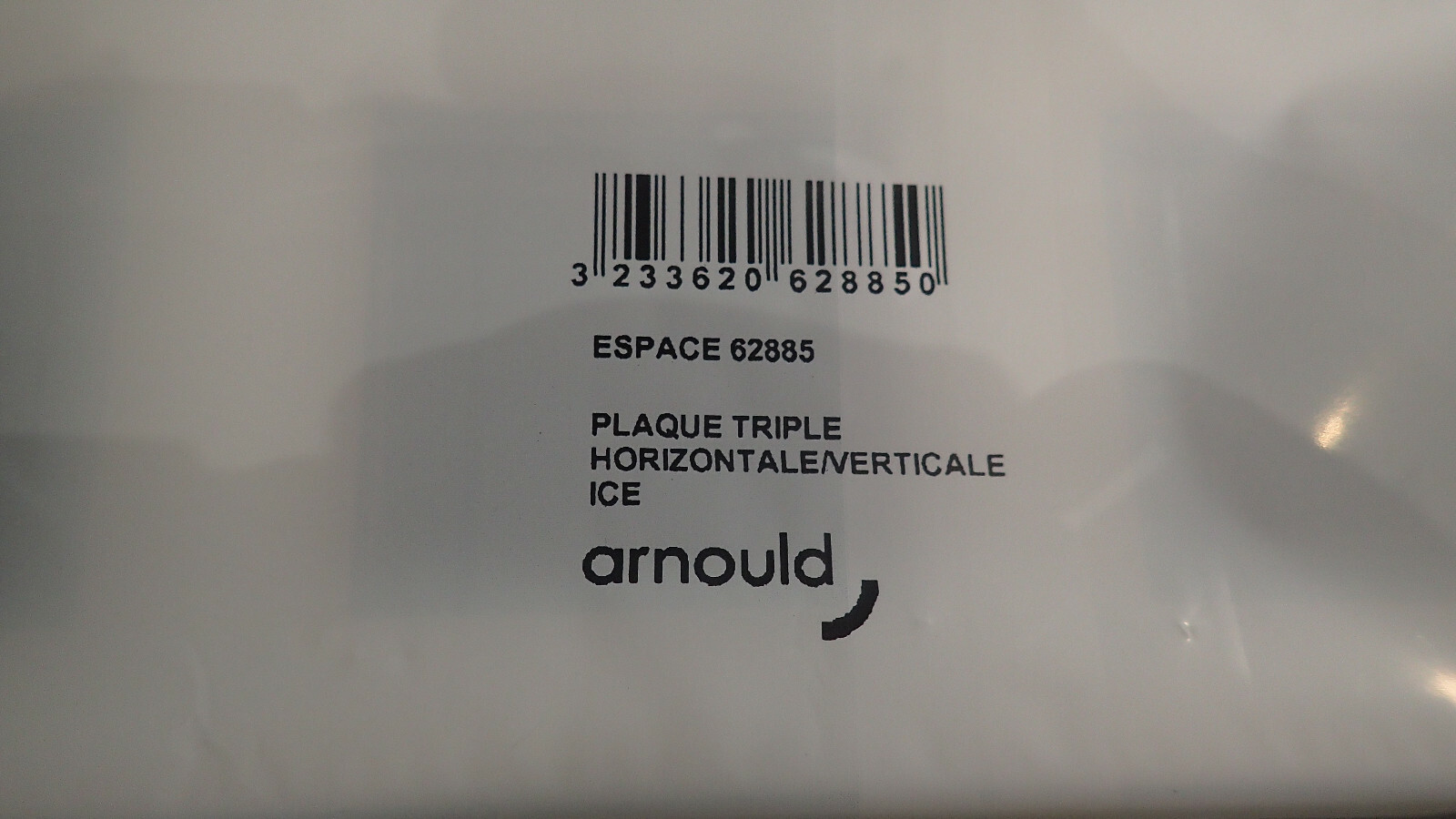 3 postes - Horizontal ou vertical , Dimension 225 x 83 mm , Entraxe 71 mm Plaque de recouvrement triple, horizontale 71 mm d'entraxe, pour trois fonctions de commutation double, Toggle Plaque triple horizontale - entraxe 71 - Blanc Lumière Arnould gamme EspaceRéf Arnould : 60882 Avec ses lignes épurées et intemporelles, la gamme Espace propose de nombreuses fonctions.Partout à sa place, elle s'intègre parfaitement à tous les styles d'intérieur et reste très accessible. Info Fiche Titre/Descriptif : Plaque triple - entraxe 71 - Blanc lumière Réf. : 60882... Plaque Espace triple, entraxe 71mm - lumière : : BricolageNous nous efforçons de protéger votre sécurité et votre vie privée. Notre système de paiement sécurisé chiffre vos données lors de la transmission. Nous ne partageons pas les détails de votre carte de crédit avec les vendeurs tiers, et nous ne vendons pas vos données personnelles à autrui.En savoir plus... Ne convient pas pour la série ESPACE EVOLUTION (support d'appareillage noir) Descriptif ! Attention ! achat de la référence Arnould 62884 à petit prix, Livraison 28-72hrs pour les produits en stocks Arnould Espace Plaque Vert Mint 3 Postes Triple Horizntale Ou Vertical Entraxe 71mm Translucide Colore 3233620628829 Plaque Triple Horizontale Avec Lumière