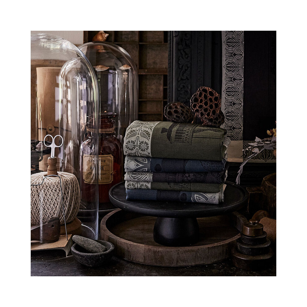 Torchon tissé jacquard de qualité supérieure par Le Jacquard Français : le motif tissé est visible à l'avant et à l'arrière pour sécher les mains, les verres ou la vaisselle. Le Jacquard Français fabrique ses produits conformément à la norme Oeko-Tex Standard 100., Fabriqué en France Excellentes propriétés de séchage, sans peluches. Le Jacquard Français 27511 Torchon En Coton Motif Frites A Croquer Reinette 80 X 60 Cm Découvrez notre gamme torchons de cuisine, essuie-mains, de grandes marques françaises et de haute qualité, des torchons trop beaux pour essuyer la vaisselle ! Torchon Curiosités Florales Empire Le Torchon Curiosités Florales Empire est un véritable cabinet de Curiosités s où les cloches de verres décoratives célèbrent la nature. Ce sublime torchon en damassé, absorbant, en 100 % coton et son coloris hivernal et sombre vous plongera dans une atmosphère confidentielle et distinguée pour une décoration aux allures bucoliques en toute saison Grâce à sa taille, il peut également être utilisé comme couverture décorative ou support. Curiosités Florales, a collection that comes to life like a veritable cabinet of curiosities, where decorative glass bells celebrate nature. This sublime damask tea towel, absorbent because it's 100% cotton, and in its dark, wintry color, will plunge you into a confidential, distinguished atmosphere for decorating with a bucolic allure in any season Torchon tissé jacquard de qualité supérieure de la marque Le Jacquard Français : Le motif tissé est ible à l'avant et à l'arrière Lavage en machine avec un crochet de suspension., Pas de sèche-linge. Jardin D'Eden Table Linens by Le Jacquard Francais