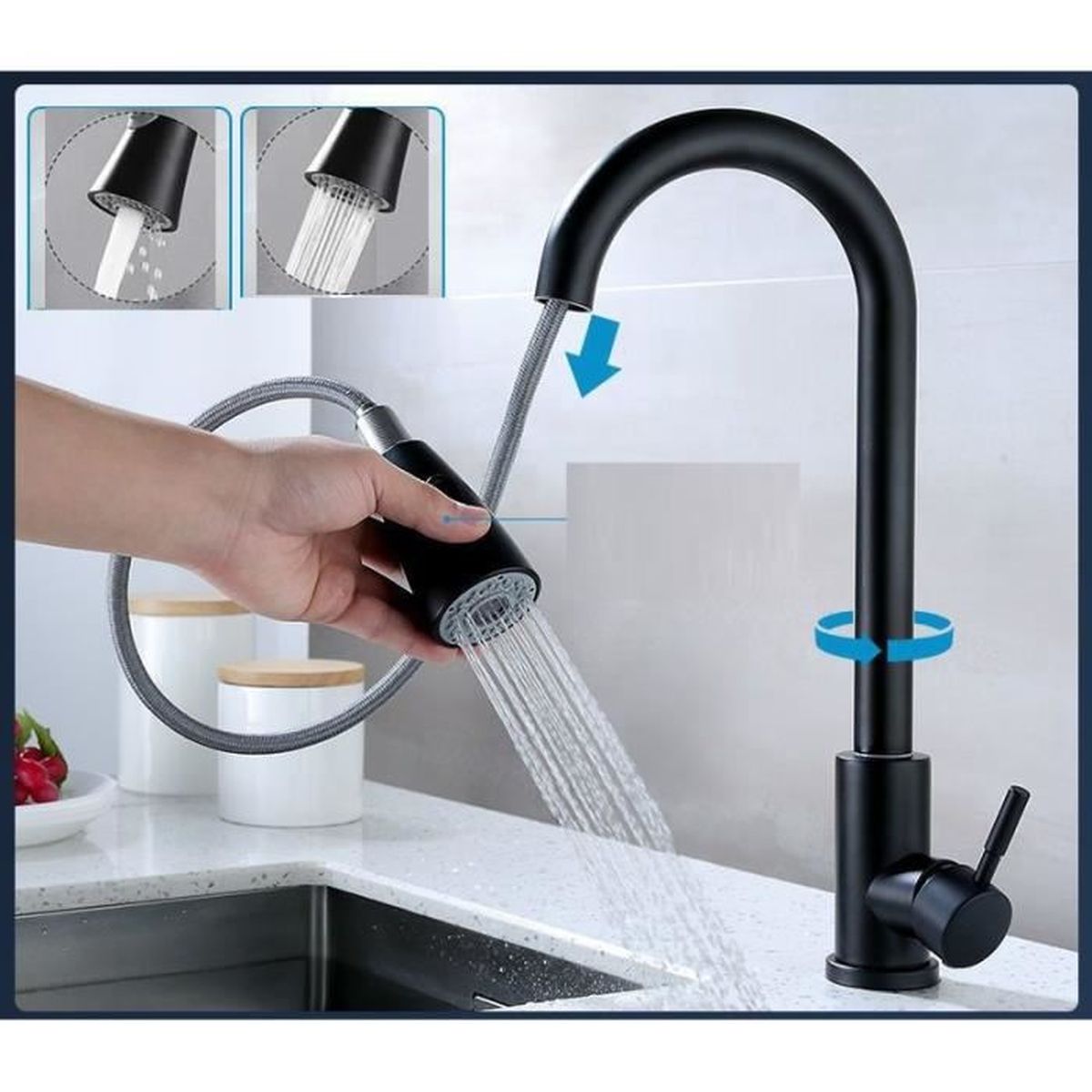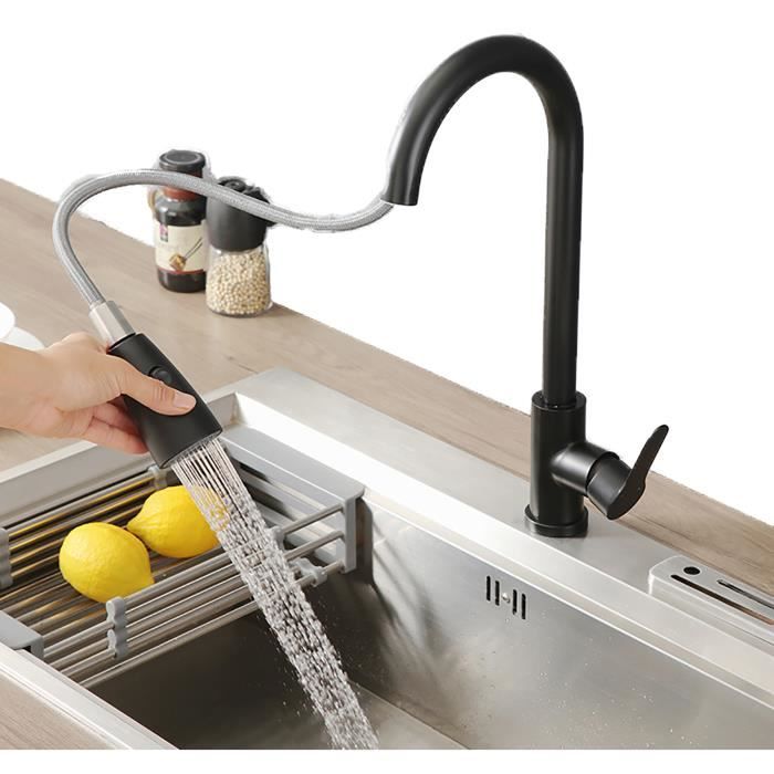 YardMonet Robinet de cuisine rotatif à 360 ° - Robinet d'évier de cuisine avec levier unique pour 1 trou - En acier inoxydable - Noir Cecipa Max Noir Mitigeur De Cuisine à Ressort Avec Douchette Extensible Robinet De Evier Rotatif A 360deg Mitigeur Ressort Avec 2 Fonctions Eu Modele Cecipa max Robinet Douchette Noir Mitigeur Cuisine avec Deux Types de Jet d'eau Pivotant à 360°♥2 TYPES DE JETS D'EAU La pomme de douche amovible avec fonction de commutation, vous pouvez utiliser le bouton sur la pomme de douche pour changer le type de jet d'eau entre jet de douche et jet d'eau.♥HAUTE QUALITÉ Le robinet d'évier de cuisine est fabriqué en acier inoxydable 304 de haute... Robinet Mitigeur Douchette Extractible 360 ° ROBINET CUISINE Mitigeur Evier Avec Douchette Noir Bec, Robinet Cuisine Av Robinet Avec Douchette Extractible Robinet de cuisine TRAHOO - Douchette extensible 360° - Écran LED - 3...