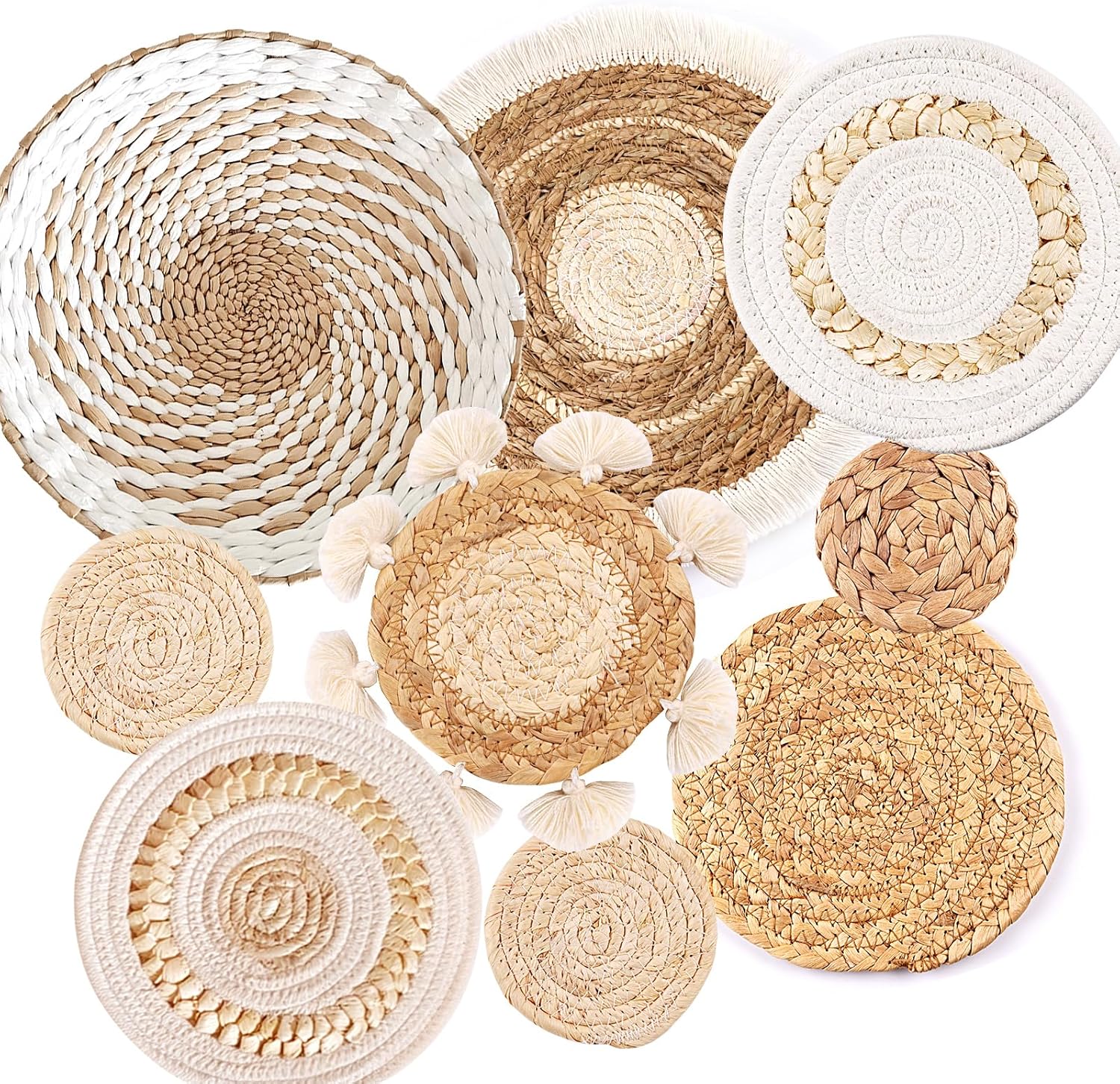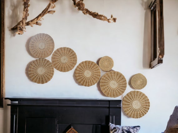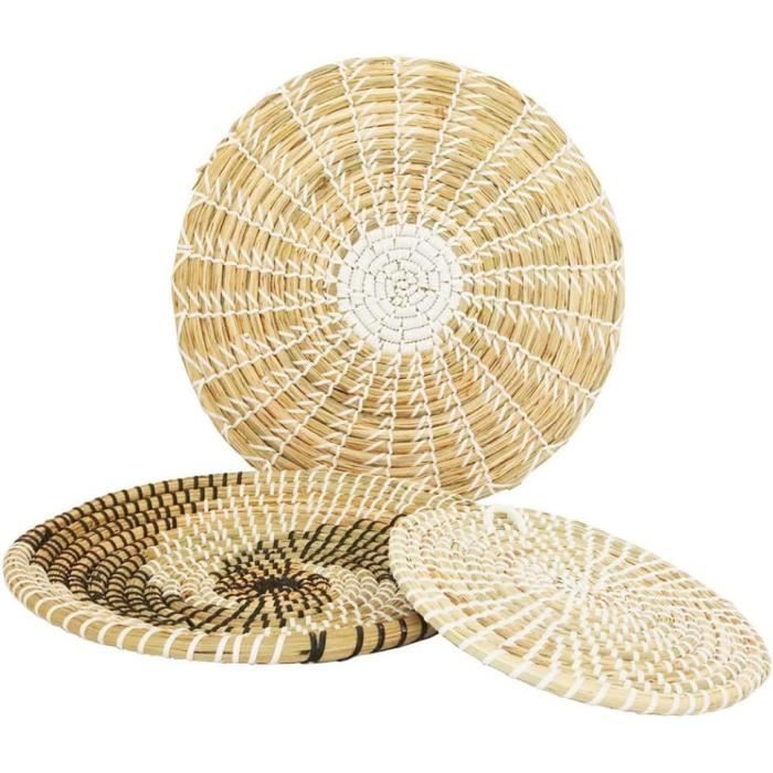 Fabriqués en osier tressé, ces paniers ronds aux tons neutres ou terreux apporteront une touche de vacances à votre intérieur. Lot de 6 paniers à suspendre, paniers muraux tissés à la main Paner mural afrcan, paner en fbre de bananer, paner en rapha... Ensemble de 6 paniers muraux: Cet ensemble comprend 6 paniers muraux, offrant de nombreuses possibilités de décoration. Paniers muraux en osier tressé: Fabriqués en osier, ces paniers muraux offrent une résistance et une durabilité exceptionnelles. Ajoutez une touche de style à votre maison avec ces paniers muraux WENCY. Leur style unique et leur forme ronde apporteront une ambiance chaleureuse et invitante à votre maison Vous pouvez les accrocher individuellement ou les regrouper pour créer une décoration murale plus imposante Décoration murale bohème: Offrez une touche de bohème à votre intérieur avec ces paniers muraux tissés. Leur texture brute et non finie ajoute un charme rustique à la décoration Cet ensemble de décoration murale de paniers tissés peut être utilisé à diverses occasions, telles que la cuisine, le salon ou la chambre à coucher, vous pouvez également le bricoler selon votre propre style pour réaliser des décorations de vacances Wnvivi Lot De 6 Paniers Muraux Bohèmes Tissés à La Main - Décoration Murale En Rotin - Dessous De Plat Ronds Tissés Pour Salon, Chambre à Coucher (F-6 Pièces Ils ajouteront une touche de bohème à n'importe quelle pièce de votre maison