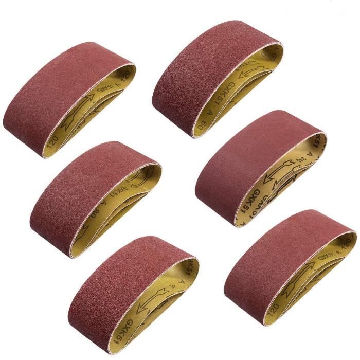 60 pcs bandes abrasives 10 x 330 mm,(Grain 40 60 80 120 150 240) Professional Bande abrasive pour lime à main, pour la quincaillerie, le bois, le métal et la peinture -Senmai Tools Bande abrasive 75 x 1000 grain zirconium avec une toile semi-souple... Bande Abrasive Cadre 33x24 Lot De 75 Bandes Abrasives En Zirconium Pour Ponceuse 10 Mm 330 Mm HDD 18 To Bandes Abrasives Pour Ponceuse Taille : 100 mm x 915 mm ponceuse grain 120, 8 pièces au total (Remarque : veuillez poncer dans le sens de la flèche sur la bande de ponçage) Nombreuses utilisations : les bandes abrasives sont très adaptées pour le meulage de couteaux, l'élimination de la rouille, l'ébavurage, l'affûtage des lames, le polissage du métal, le travail du bois. Ils sont adaptés à tous les types de...