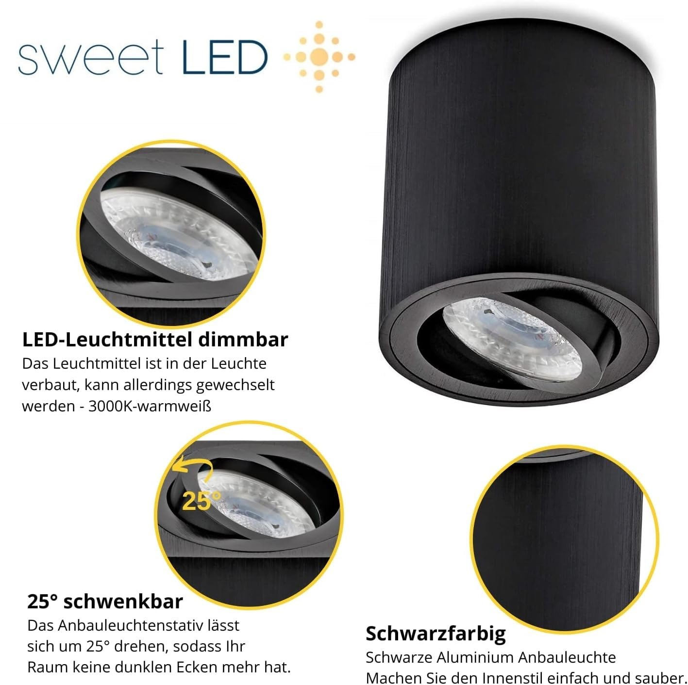 Temps d'allumage : < 0,001 s. Température de couleur : 3000 K - blanc chaud. ✔ Haute qualité et design moderne et intemporel., ✔ Installation facile. Nos cadres en saillie au design plat Le diamètre du couvercle est de Ø 80mm et la hauteur de 84mm. Matériau : Boîtier en plastique., Dimensions : Ø 50 x 54 mm. ✅ POLYVALENCE - Ces plafonniers peuvent être utilisés comme éclairage décoratif dans toutes les pièces fermées. ✔ Ampoule remplaçable à tout moment., Tension : 230 V CA., Fréquence : 50 Hz. Ils offrent une luminosité de 530 lumens, une puissance de 7W, une classe de protection IP20, peuvent être inclinés jusqu'à 25°, ont une durée de vie d'environ 30 000 heur ✅ CARACTÉRISTIQUES SPÉCIALES - Ces plafonniers sont en aluminium, de couleur noire. Ampoule Led Gu10,7W(Équivalent Halogène 50W), Sans Scintillement Spot... Cycles de commutation : 15 000 on/off. 1 ampoule Sweet LED GU10., Kit de montage avec : Douille GU10, vis et chevilles. Amazon Projecteur Ensemble De Spots LED En Saillie Sweet 230V IP20 Incl Lampe Projecteur Spot LED en saillie Triple Orientable NOIR pour ampoule GU10 Classe de protection IP20 en saillie, orientable jusqu'à 25°, la tension du spot en saillie est de 230V Température de couleur : 3000 K - blanc chaud. Spot... Cadre de montage - Dimensions : Nous développons constamment de nouveaux styles de produits pour mieux répondre aux différentes exige Plafonnier avec ou sans capteur., Applique murale, veilleuse., Ampoules LED assorties. ✅ CONTENU - Recevez 1x Spot encastré rond 7W en noir, incluant une ampoule LED GU10 de 3000K blanc chaud, ainsi qu'un bornier et un kit de montage avec vis et chevilles pour l'installation. Ampoule - Caractéristiques électriques et techniques : Tension : 230 V / 50 Hz., Culot : GU10., Consommation électrique : 7 W - Flux lumineux nominal : 530 lm - Valeur comparative : environ Ampoule à incandescence de 50 W., Intensité variable : oui. Variateur recommandé : Variateur de phase LED - Attention : la charge minimale ne doit pas être inférieure Type de LED : SMD. ✔ Aucun transformateur nécessaire., ✔ Orientable à 25°. Spot encastrable pour salle de bain, salon ou extérieur. Livré avec télécommande Blanc extra chaud (2 700K) 5 mètres de câble par projecteur Dimmable Un seul driver est requis Seulement 14 mm de hauteur Diamètre 69 mmFonction mémoire, mémorise le dernier niveau de luminosité