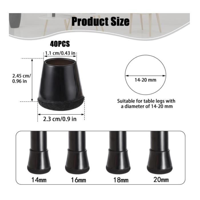 Description du produit 1 Avertissement De Sûreté Attention: Utilisez un tournevis pour fixer les bouchons aux pieds des meubles. 【Matériau silencieux】patin de chaise sont fabriquées en feutre et en fer. Laissez vos meubles glisser tranquillement sur le sol sans laisser de rayures et réduire le bruit. 20 Pcs Patin Chaise en Caoutchouc Protection Pied de Chaise Anti-Glisse contre les dommages causés par le déplacement des meubles d'avant en arrière. Protege Pied De Chaise Ouprisks 40 Pièces Protection Pied De Chaise, Silicone Patin Chaise, Avec Feutre Tampon De Chaise, Protège Les Sols Des Rayures Et Du Bruit, Convient Aux Pieds Ronds Et Carrés (Clear, S(Fit 15-24mm Patin Antidérapant Solde Tenir hors de portée des enfants. Peut être utilisé pour les chaises, les tables, les bureaux, les fauteuils, les tabourets de bar, etc. 【Multi-scènes】patins pour meubles sont parfaites pour une utilisation à la maison, au bureau et au restaurant. 20 Pcs Patin Chaise en Caoutchouc Protection Pied de Chaise Anti-Glisse...