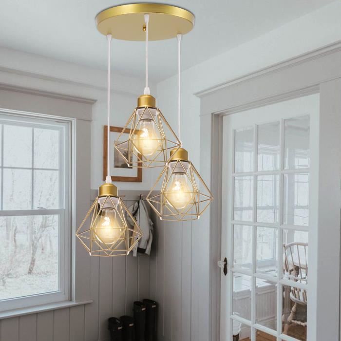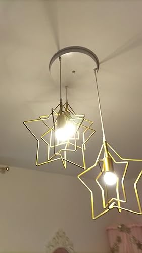 IDEGU 3 Lumières Lustre Suspension Moderne Suspension Luminaire Étoile Lampe De Plafond E27 Métal Plafonnier Luminaire Avec Avec Plaque De Plafond, 32cm, Or