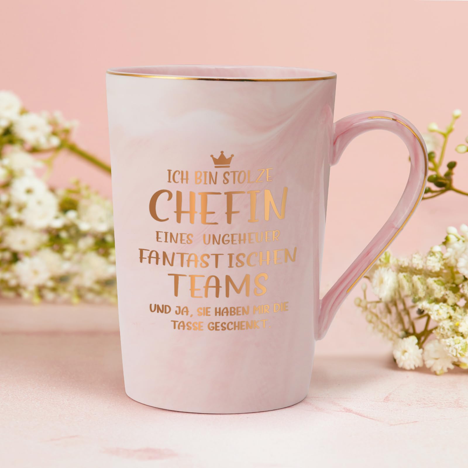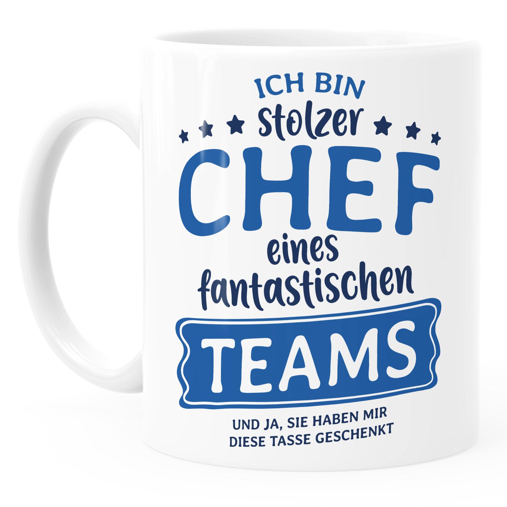Le meilleur geste pour un patron cool : cette tasse de chef avec inscription en allemand « Ich bin stolze Chef eines ungeheuer fantastischen Team. Diamètre : 8 cm, hauteur : 12 cm, capacité : 400 ml Large utilisation : notre tasse de haute qualité a une utilisation large, convient très bien à la maison ou au bureau et constitue un cadeau parfait pour un cheinf humoristique. Description du produit Cette tasse à café amusante avec l'inscription humoristique « Ich kam, ich sah, ich hab vergessen » est le cadeau parfait pour les collègues, les amis ou les membres de la famille ayant un sens de l'humour. Cette tasse en céramique de qualité supérieure passe au lave-vaisselle et au micro-ondes, ce qui la rend particulièrement durable et facile d'entretien... Joymaking Tasse à café en céramique avec inscription en allemand « Ich bin stolze Chefin eines wahnsinnig fantastischen Teams » - Cadeau d'anniversaire, d... Tasse Stolze Chefin Eines Fantastischen Teams - Geschenke Für Chefin » Idée cadeau amusante pour le patron ou comme cadeau de Noël, d'anniversaire ou d'adieu. Tasse mit Gravur - Stolze Chefin des Teams - Blau | , 17,95 Emballage cadeau exquis : la tasse à café cadeau est emballée dans une belle boîte cadeau. Une impression vraiment durable qui ne s'estompe jamais ou ne perd pas son éclat est parfaite pour profiter du café, du thé, des boissons chaudes et froides. Comprend une cuillère dorée et un dessous de verre antidérapant.