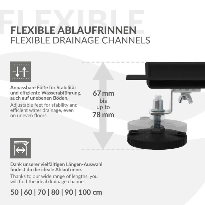 Aica Caniveau de douche italienne 90 cm en acier inoxydable 2 en 1 à carreler Siphon 360 Kit Salle De Bain Bernkot Caniveau De Douche Carré 20 X 20 Cm, Siphon à 360° Avec Système Anti-odeurs Et Tamis à Douche Italienne Technologie et matériau : technologie de qualité supérieure combinée à un design moderne. Biubiubath Caniveau de douche, siphon de sol Biubiubath a tous les styles les plus nécessaires sur le marché aujourd'hui. Contrôle qualité élevé, afin que nous vendons des produits, nous avons la meilleure assurance qualité, soyez assuré que l'utilisation. Largeur de la jante : 2 cm. Les caniveaux de douche est excellente finition à un design contemporain. Une installation pratique et une utilisation flexible grâce à la hauteur réglable et les différentes longueurs proposées permettent d'adapter le caniveau de douche à vos besoins Débit maximal jusqu'à 50 l/min. Le design esthétique permet l'utilisation de fuites de sol dans une variété d'environnements, une large gamme d'utilisation. Caniveau de douche Vilstein avec siphon,système anti-odeurs et tamis à cheveux - Kit complet... Différents styles vous offrent une variété d'options. Différentes tailles disponibles. Procédé de fabrication. Beau design et fonction pratique. Le siphon de sol est en acier inoxydable 304 et en plastique ABS de haute qualité, ce qui offre une base solide., Haute performance. Le design élégant, ainsi que les matériaux de fixation et résistants à la corrosion, rendent ce caniveau de douche digne d'être votre meilleur choix. Nos produits ne vous laisseront pas tomber. La fonction de drainage du caniveau de douche est excellente. Le fond du caniveau de douche a un design encastré qui s'écoule plus que les autres caniveaux. Beau et pratique, rectangulaire plat ou carré. Choisissez le caniveau de douche le plus tendance et pratique, la recherche de Biubiubath est la bonne. Chaque style convient à de nombreux environnements différents, y compris les salles de bains, les cabines de douche, les balcons, les cuisines et les buanderies. Sécurité : ce caniveau de douche peut être connecté directement au sol. Si vous avez des questions, n'hésitez pas à nous contacter. Styles : Nous avons une variété de styles différents que vous pouvez choisir. Installation et démontage : selon les instructions d'installation dans le manuel, l'installation rapide est simple et claire. Adaptateur : 40/50 L'ensemble des pièces est inclus dans la livraison. Matériaux de qualité supérieure. La longueur de la gouttière peut atteindre : 60-100 cm, largeur de la surface : 7 cm.